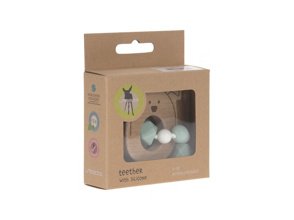 Lässig 4babies Kousátko Bracelet Wood/Silicone Little Chums dog