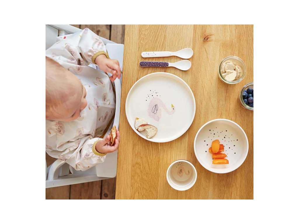 Lžičky s veselým labutím malovaným designem. Lžičky se perfektně hodí k ostatnímu bambusovému nádobí z kolekce Lama Glama. Jsou perfektní pomůckou při krmení, děti se mohou zkoušet krmit samy. Spoon set bamboo je možné umývat v myčce na nádobí, stejně tak jako další nabízené bambusové nádobí Lässig, vyrobeného z vysoce kvalitního přírodního materiálu Raw bambusu a kukuřice včetně malého množství pojivého materiálu melaminu. Díky nízké hmotnosti je vhodný i na pikniky. Neobsahuje těžké kovy, barviva ani chemické látky. Zdravá elegantní alternativa k plastovým lžičkám. Perfektně se hodí pro děti od 6 měsíců a více. Není vhodný pro použití v mikrovlnné troubě.
