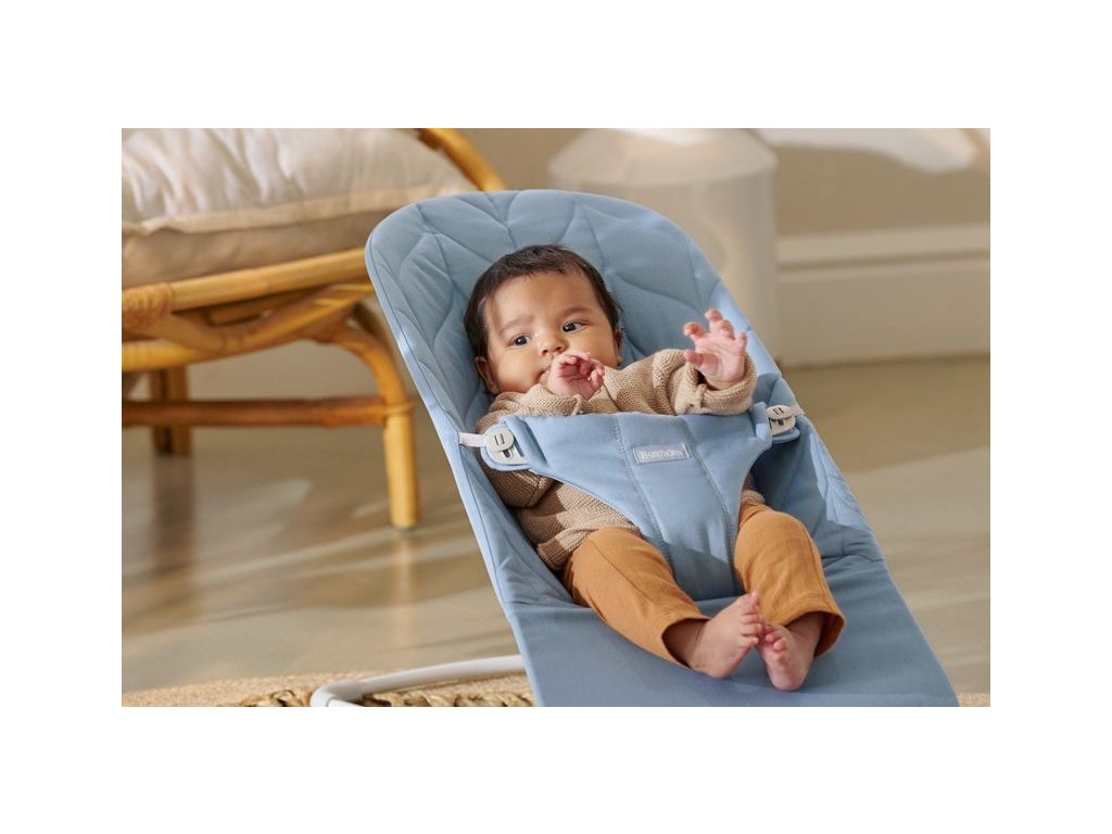 BabyBjörn Lehátko BLISS Blue cotton - prošívání Petal, světlá konstrukce