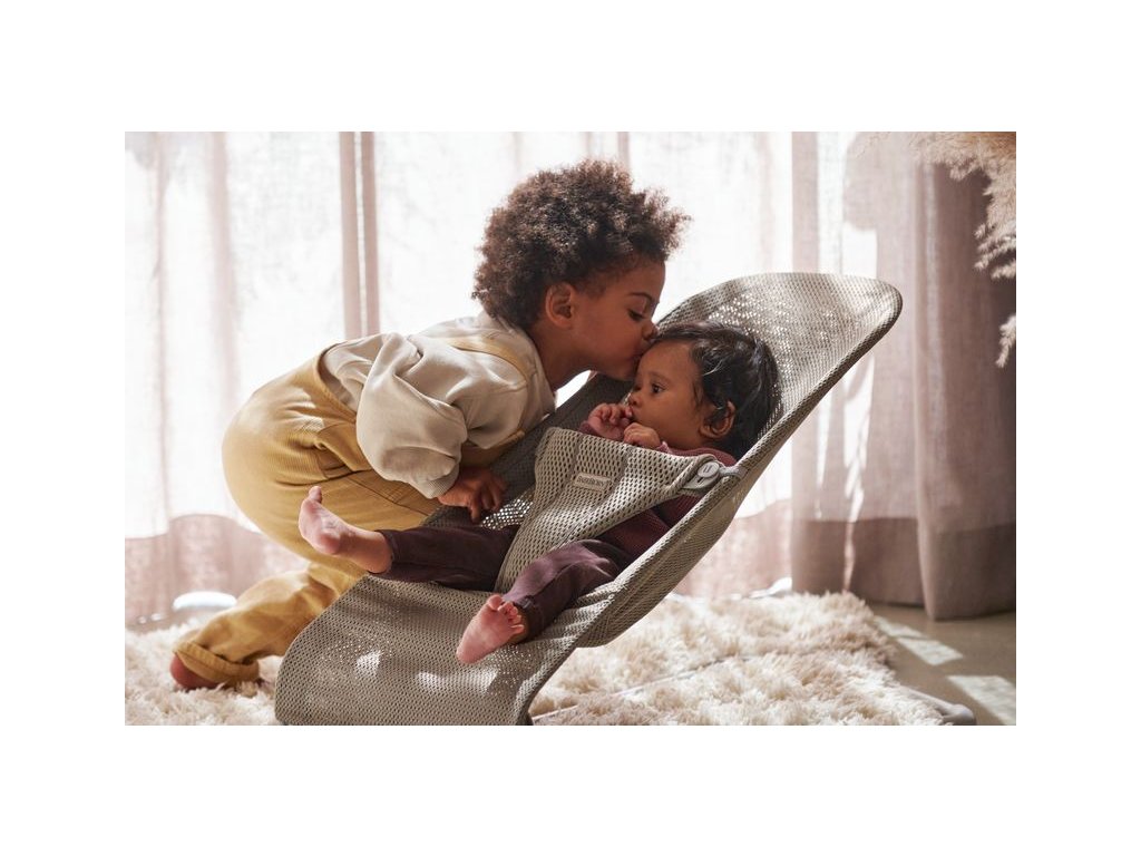 BabyBjörn Lehátko BLISS Grey beige Mesh, světlá konstrukce