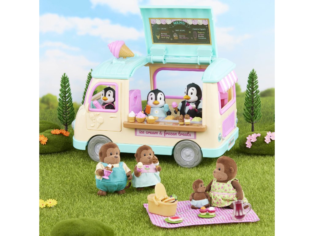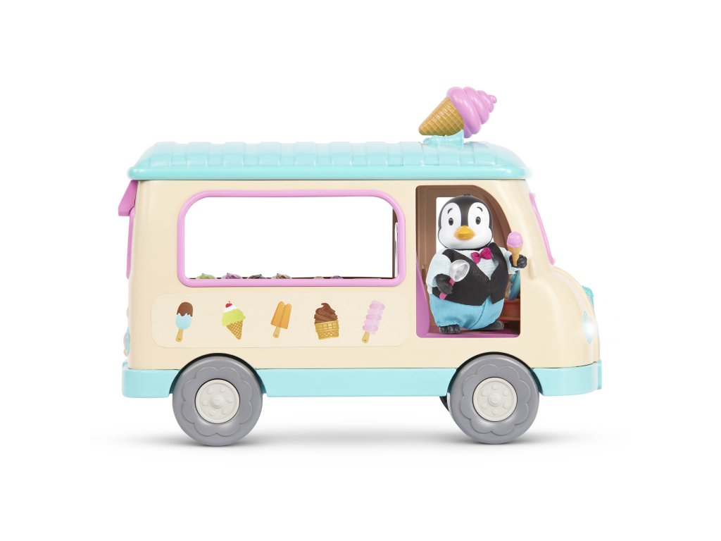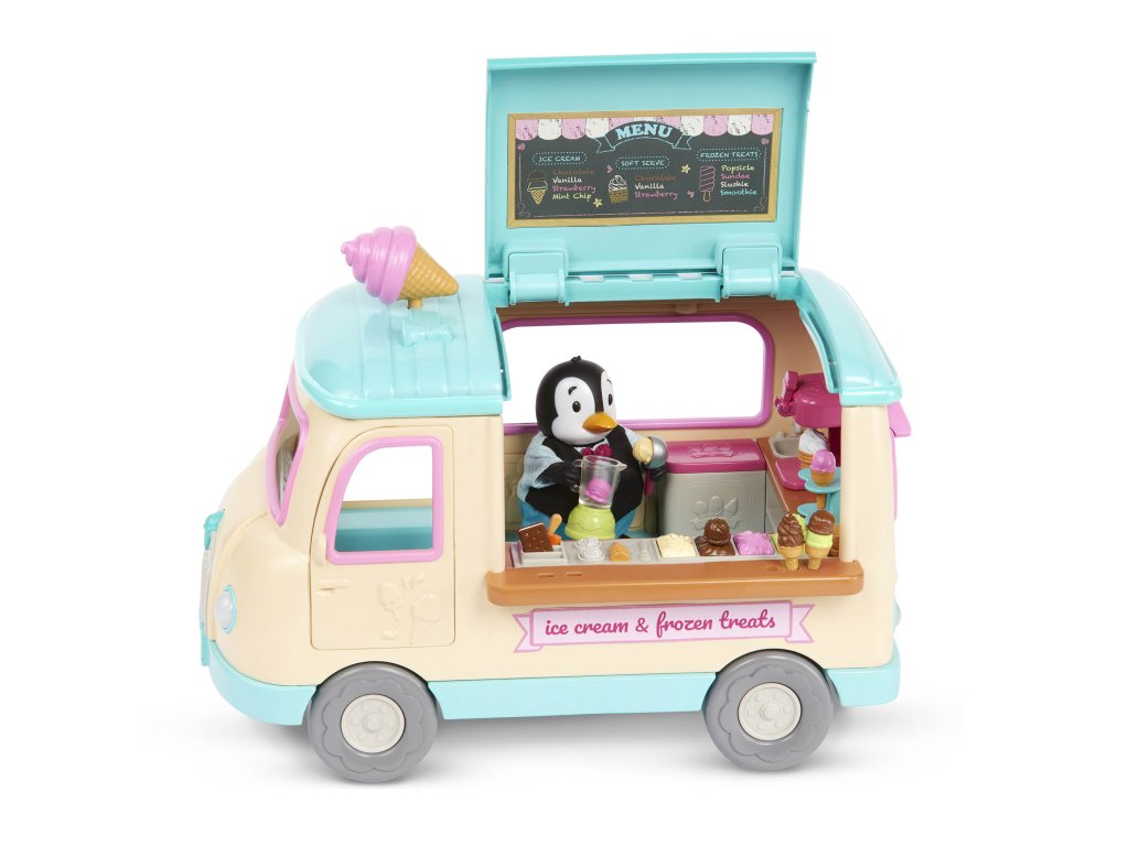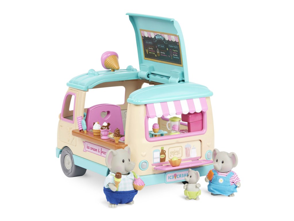 Dodávka se zmrzlinou přiváží obyvatelům městečka Honeysuckle Hollow každý letní den zmrzlinu, nanuky i mléčné koktejly vlastní výroby. Až budete vjíždět do městečka, nezapomeňte zmáčknout volant, kterým se rozsvítí světla a ozve se zvuk, aby všichni vědělí, že jedete! Postavičky zvířátek nejsou součástí balení, prodávají se samostatně.