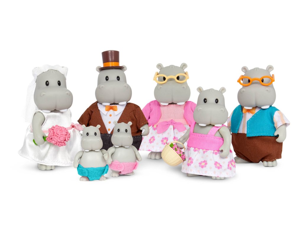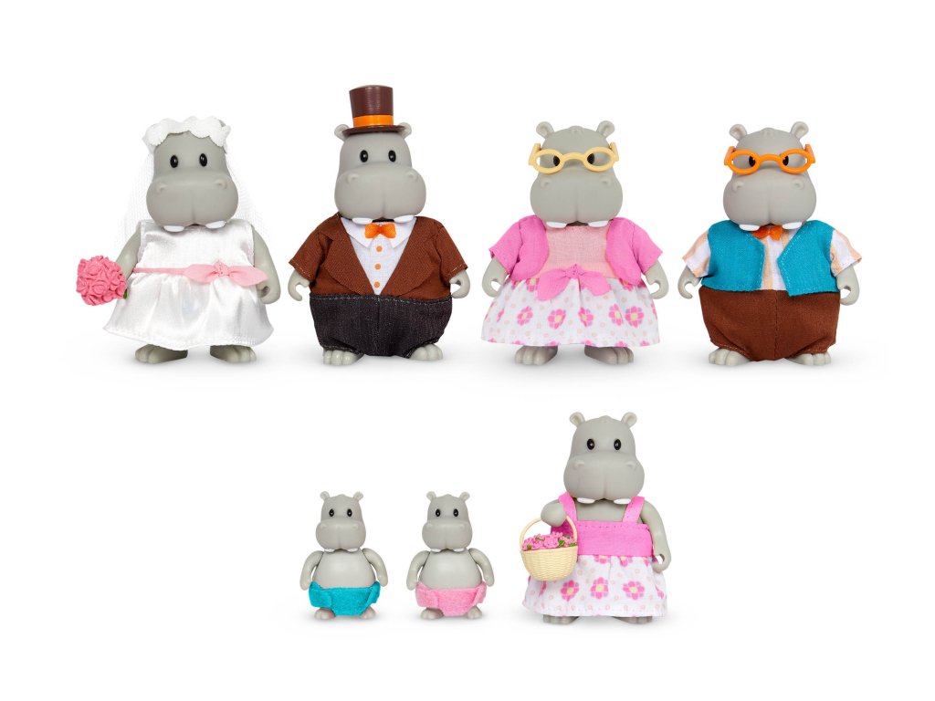 Sada obsahuje 7 postaviček hrochů. Další postavičky zvířátek, domečky, obchody, dopravní prostředky apod. se prodávají samostatně. Všechny postavičky a doplňky Li'l Woodzeez jsou navzájem kompatabilní a umožní vám vytvořit originální městečko pro nekonečnou hru rozvíjející fantazii a kreativitu vašeho dítěte.