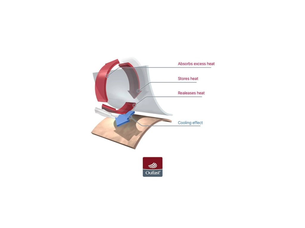 Při výrobě této zavinovačky byl rovněž použitý termoregulační materiál Outlast®. Tento materiál dokáže pracovat s tělesným teplem a zajistit tak miminku v zavinovačce maximální teplotní komfort. V případě nadměrného zahřátí odvede nadbytečné teplo, a v okamžiku ochlazení teplo uvolní a použije k zahřátí. Miminko se v zavinovačce cítí příjemně a klidně.