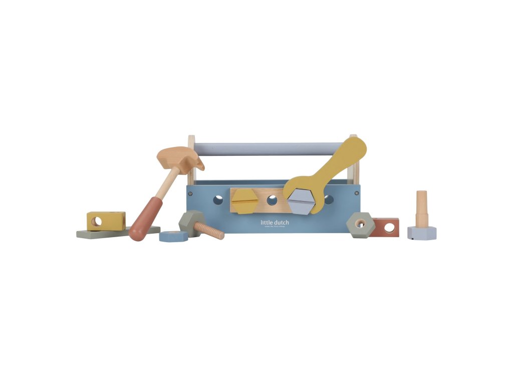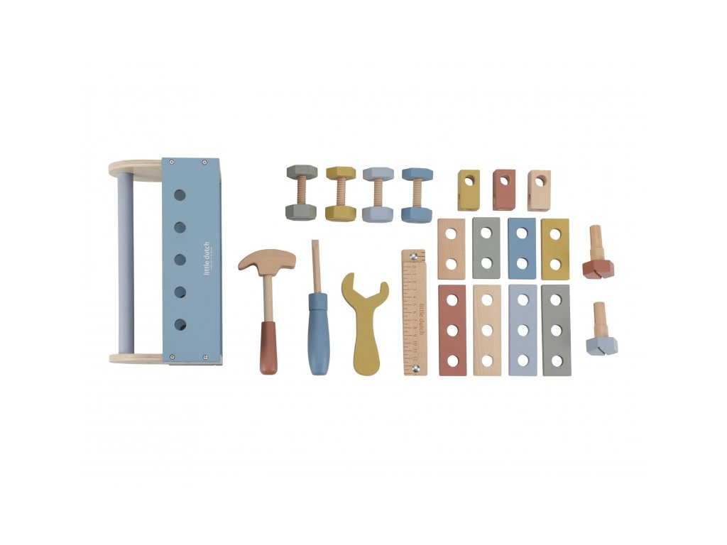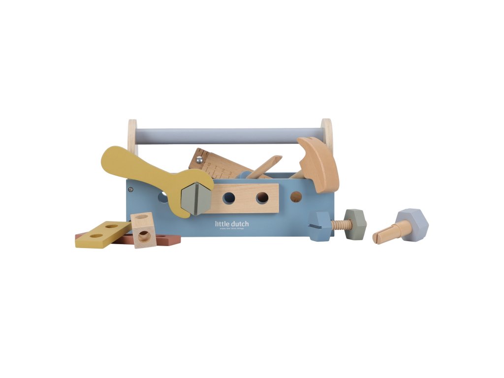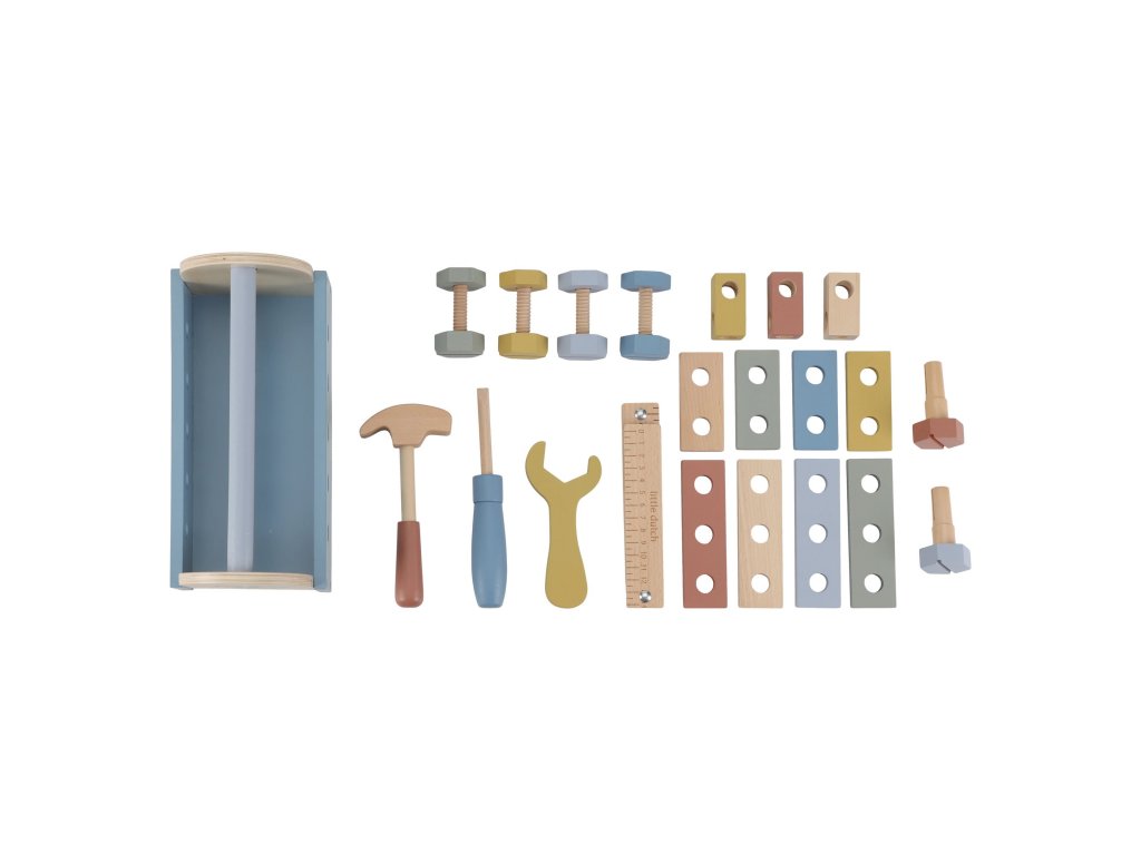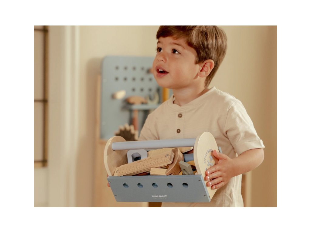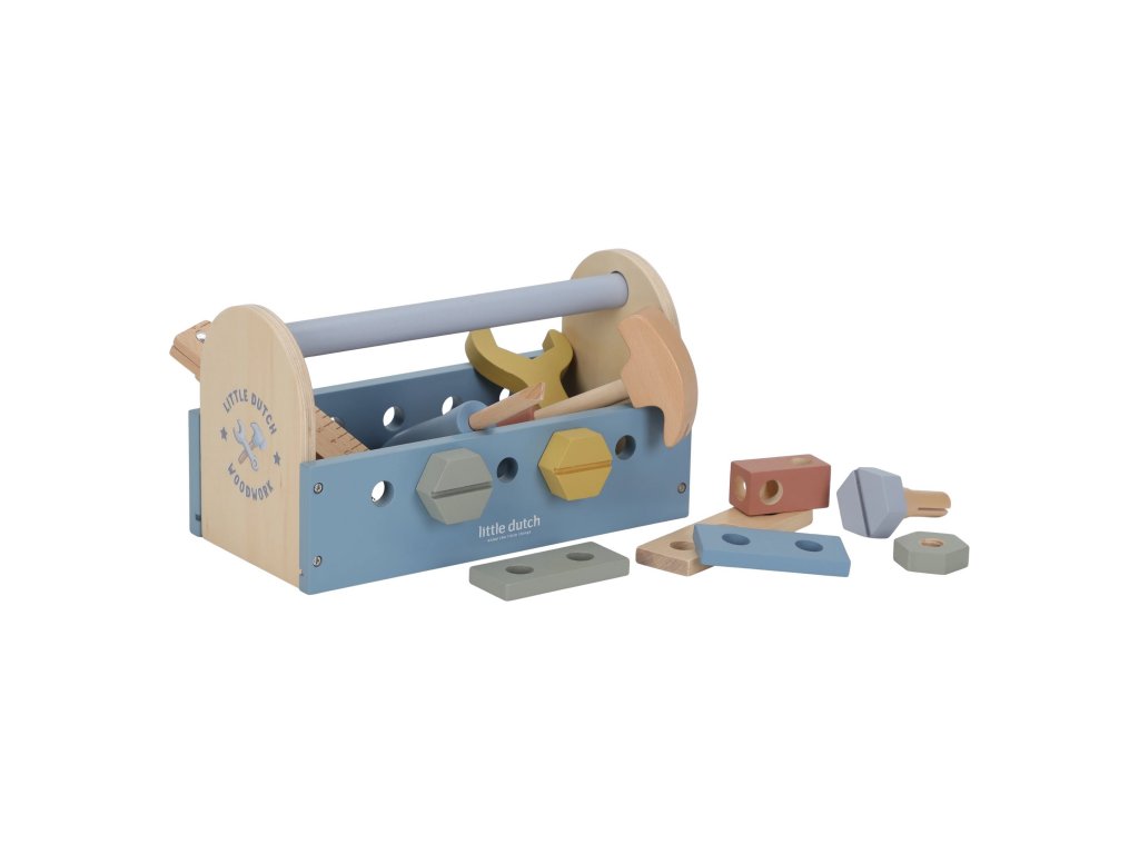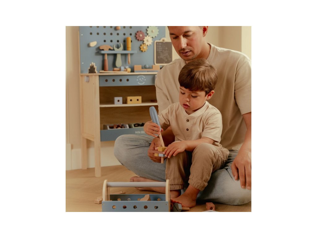 S touto sadou dřevěného nářadí v praktickém přenosném boxu zvládne vaše dítě opravit doma vše, co je potřeba. Po ruce bude mít šroubovák, kladívko i francouzský klíč. V boxu jsou i šrouby, matice a panely s otvory