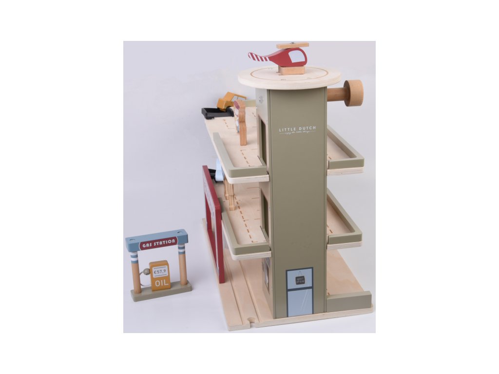 Dřevěná garáž je jednou z mnoha herních sad, které lze propojit s Little Dutch vlakovou soupravou XXL.