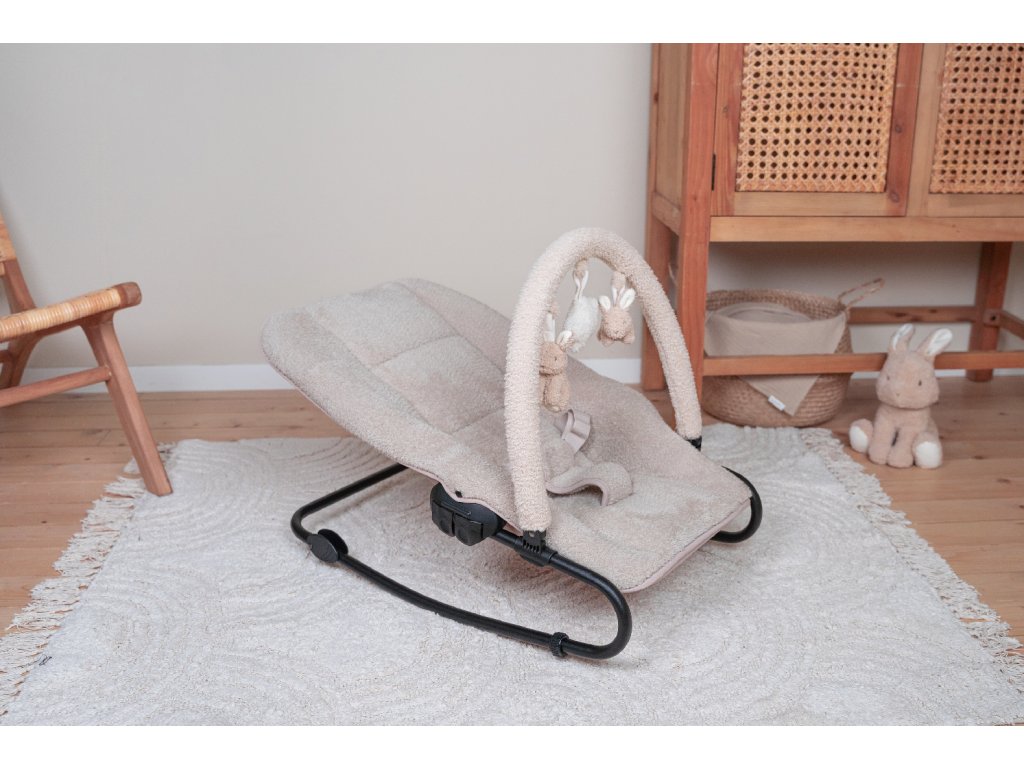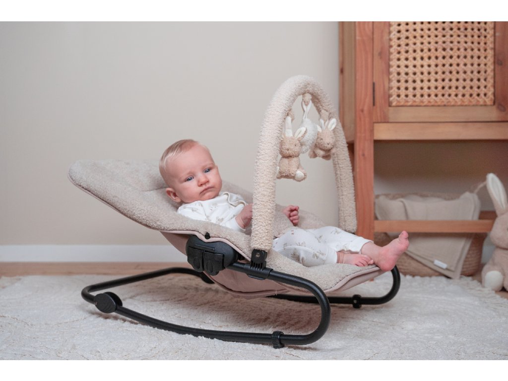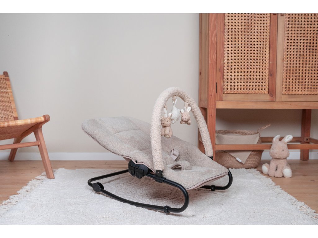 Houpací lehátko Little Dutch s hrazdou poskytne vašemu dítě pohodlné místo k odpočinku i hraní. Pozornost dítěte upoutají tři zavěšené plyšové hračky v podobě slepičky, kytičky a ovečky.