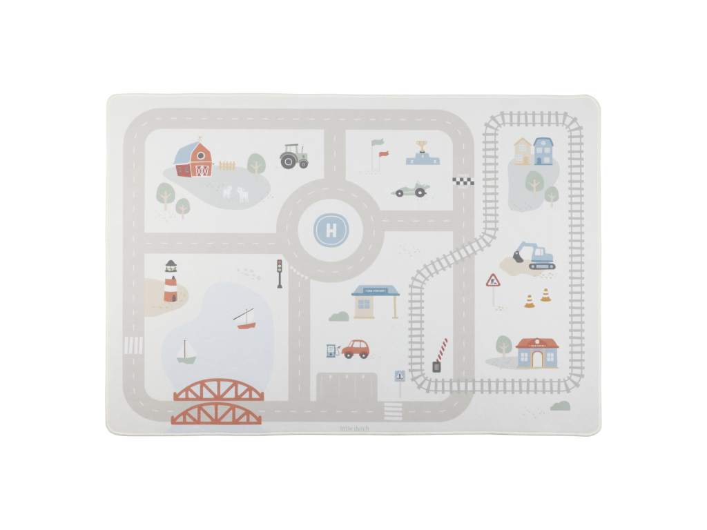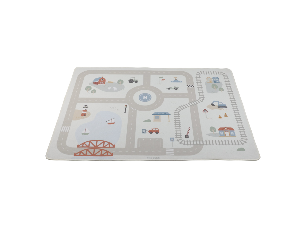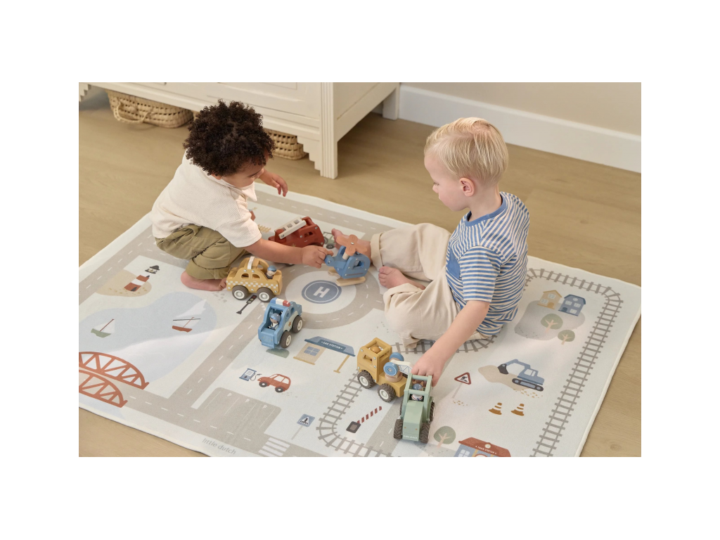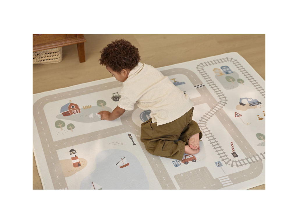Dětský koberec Little Dutch promění podlahu v dětském pokoji v živý svět plný silnic, zatáček a křižovatek, kde se příběhy tvoří samy. Děti mohou parkovat auta do garáže, projíždět městem nebo se vydat na cestu vlakem...