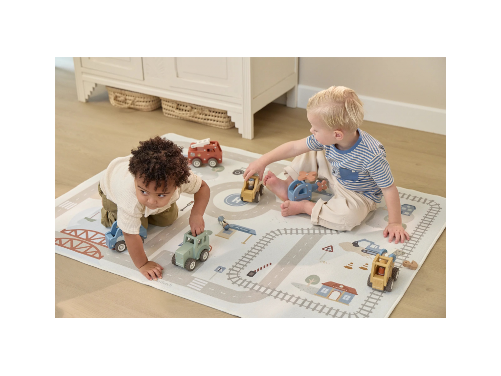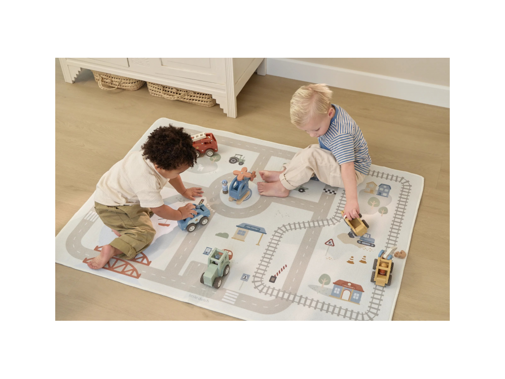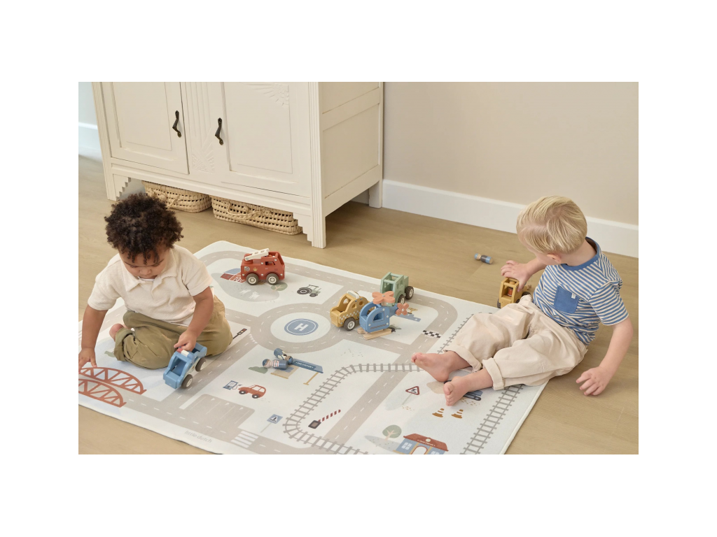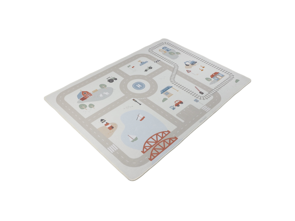 Dětský koberec Little Dutch promění podlahu v dětském pokoji v živý svět plný silnic, zatáček a křižovatek, kde se příběhy tvoří samy. Děti mohou parkovat auta do garáže, projíždět městem nebo se vydat na cestu vlakem...
