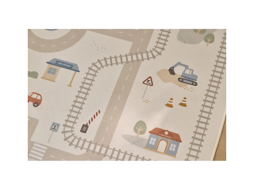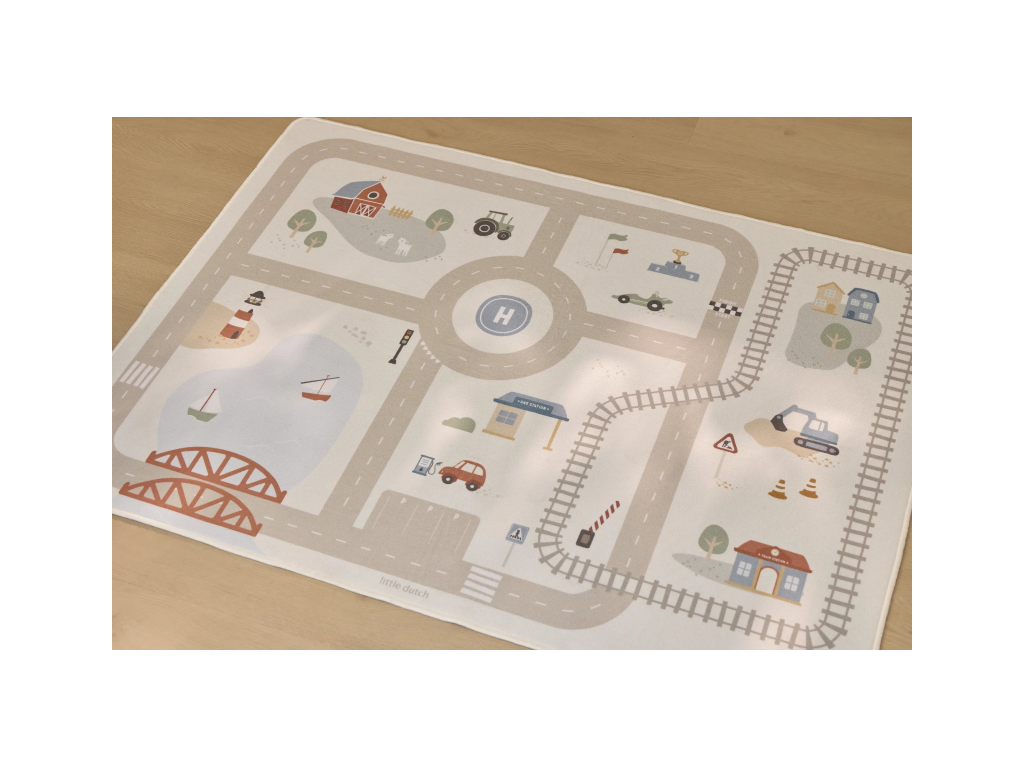 Dětský koberec Little Dutch promění podlahu v dětském pokoji v živý svět plný silnic, zatáček a křižovatek, kde se příběhy tvoří samy. Děti mohou parkovat auta do garáže, projíždět městem nebo se vydat na cestu vlakem – design koberce je přirozeně vede a podporuje fantazii i soustředěnou hru. Koberec bude skvělým doplňkem při hraní s autíčky, vláčky, stavebnicemi nebo dalšími hračkami.