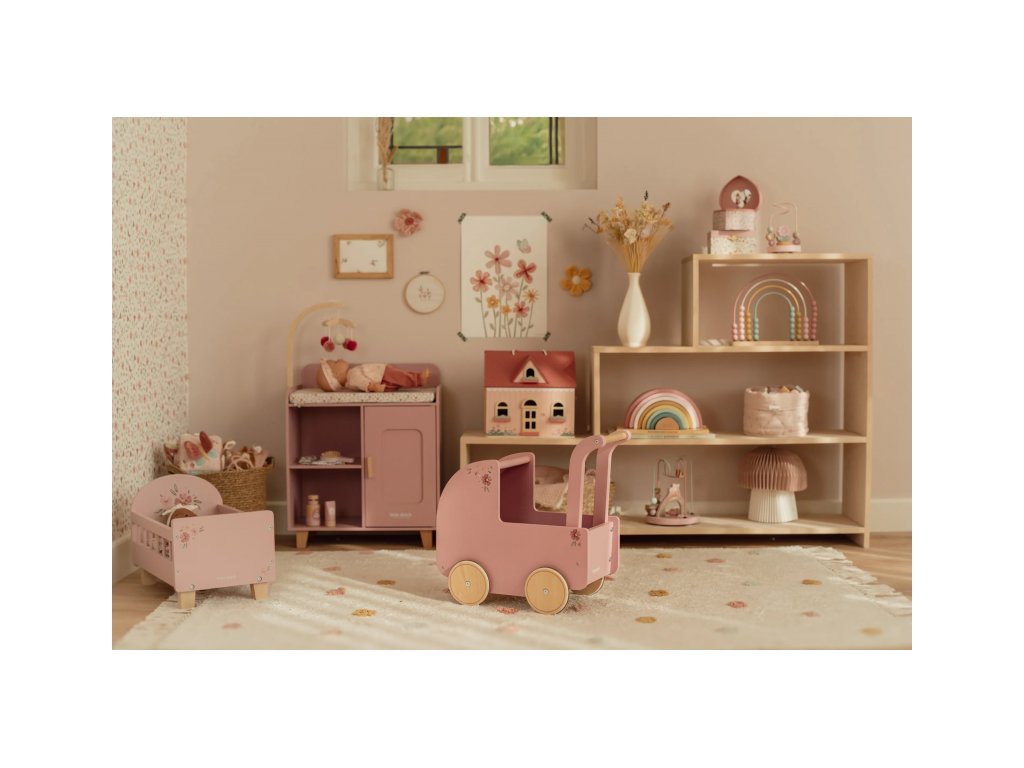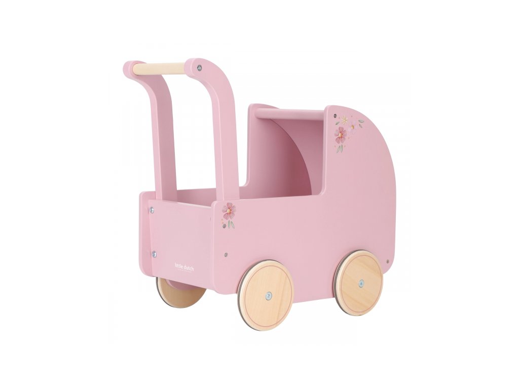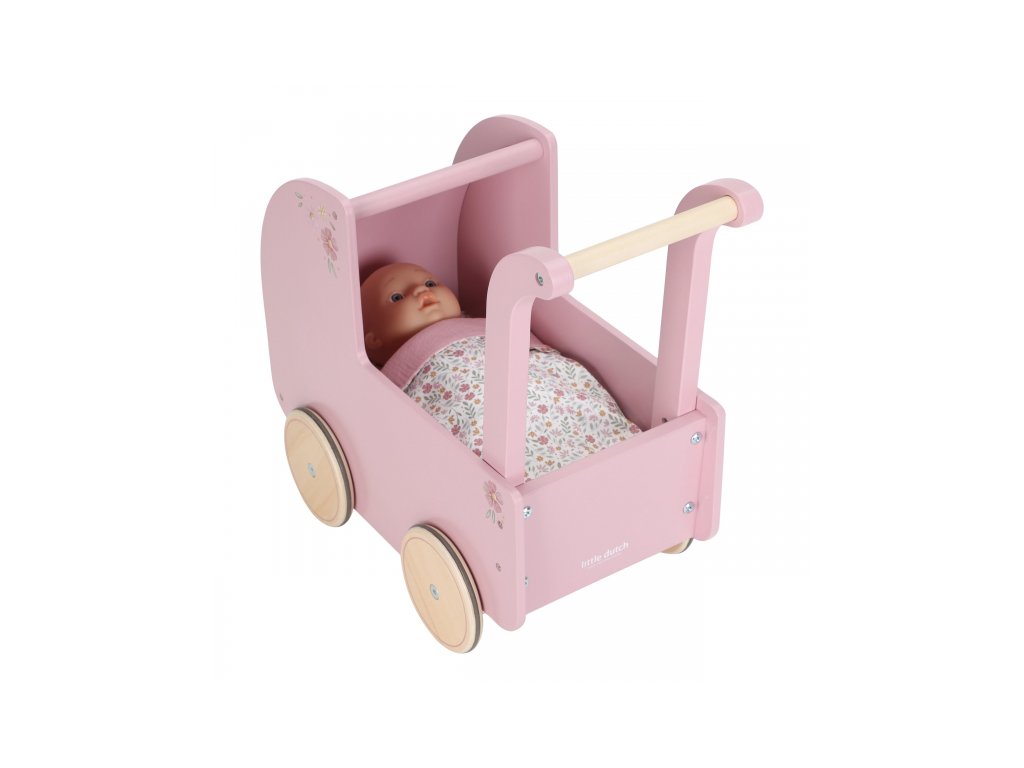 Little Dutch Kočárek pro panenky dřevěný s peřinkou Pink