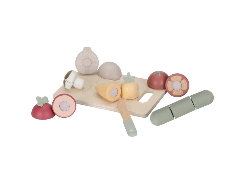 Součástí balení je i krájecí prkénko a bezpečný dřevěný nůž, díky kterým si malí kuchaři mohou zkusit přípravu jídla po vzoru dospělých. Ideální doplněk pro dětské kuchyňky a hry na vaření.