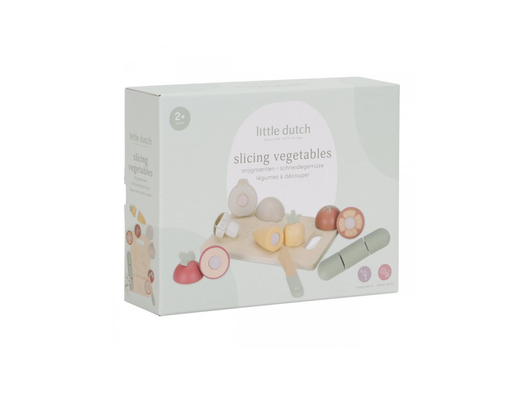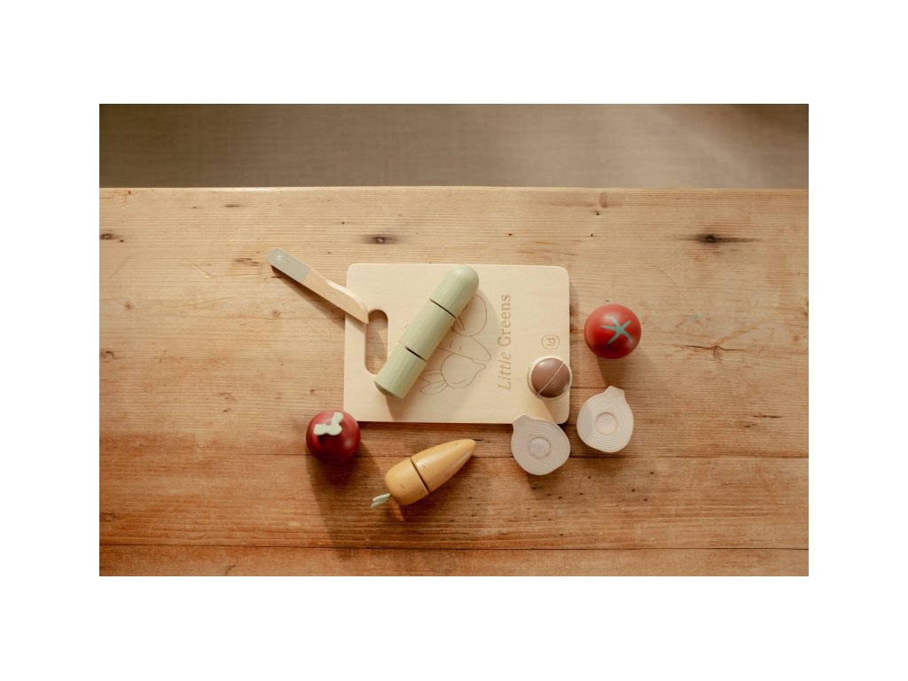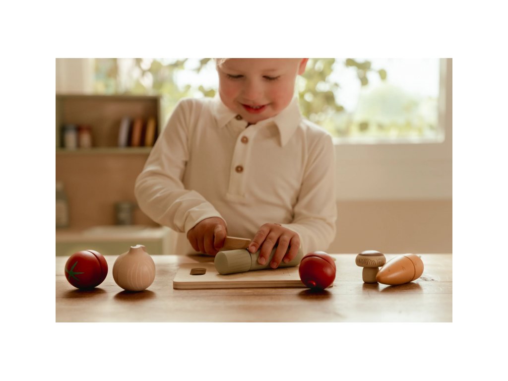Vařte jako profík a učte se jíst zeleninu hrou! Tato sada dřevěné krájecí zeleniny podporuje dětskou představivost, jemnou motoriku i chuť ke zdravému jídlu. Sada obsahuje mrkev, okurku, rajče, cibuli, červenou řepu a žampion – všechny druhy zeleniny lze dřevěným nožem rozkrojit napůl a díky suchému zipu je snadno spojíte zpět.