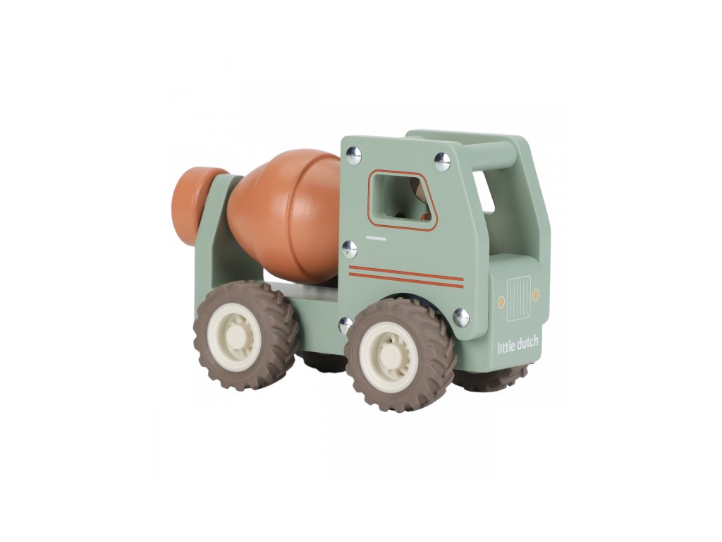 Součástí hračky je dřevěná figurka stavbyvedoucího, která dodá hře ještě více zábavy a realismu. Míchačku můžete kombinovat s dalšími stavebními vozidly – například s nakladačem, autojeřábem nebo sklápěčkou – pro kompletní stavební dobrodružství.