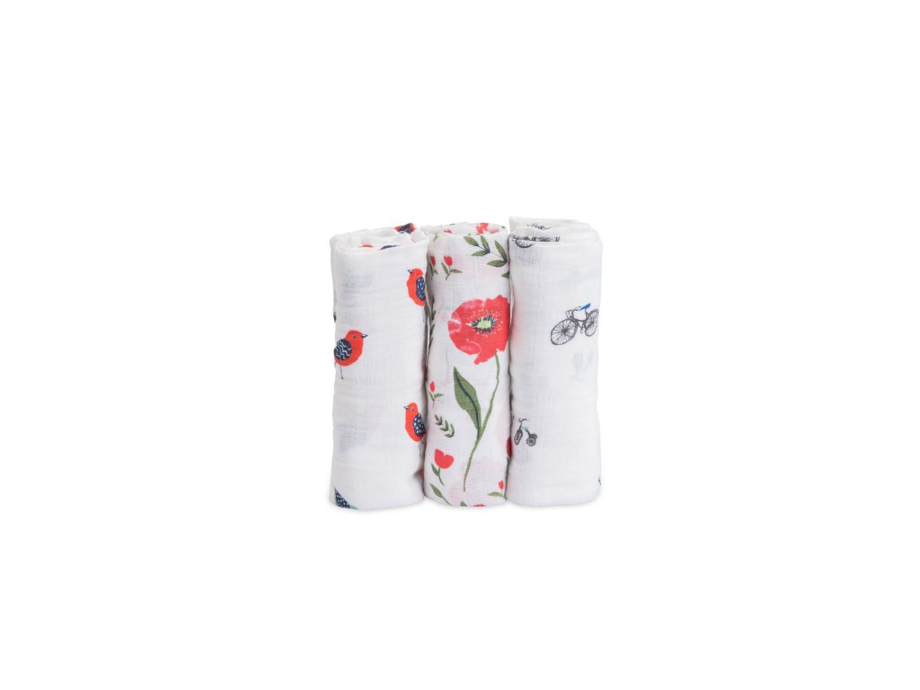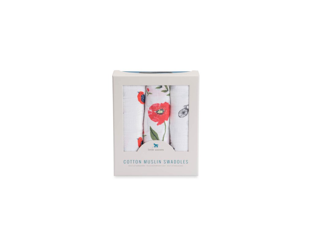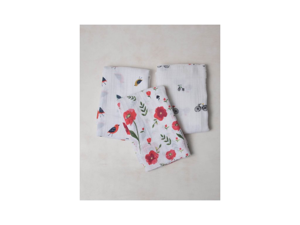 Little Unicorn Mušelínová zavinovací plena 120x120cm 3ks Summer Poppy