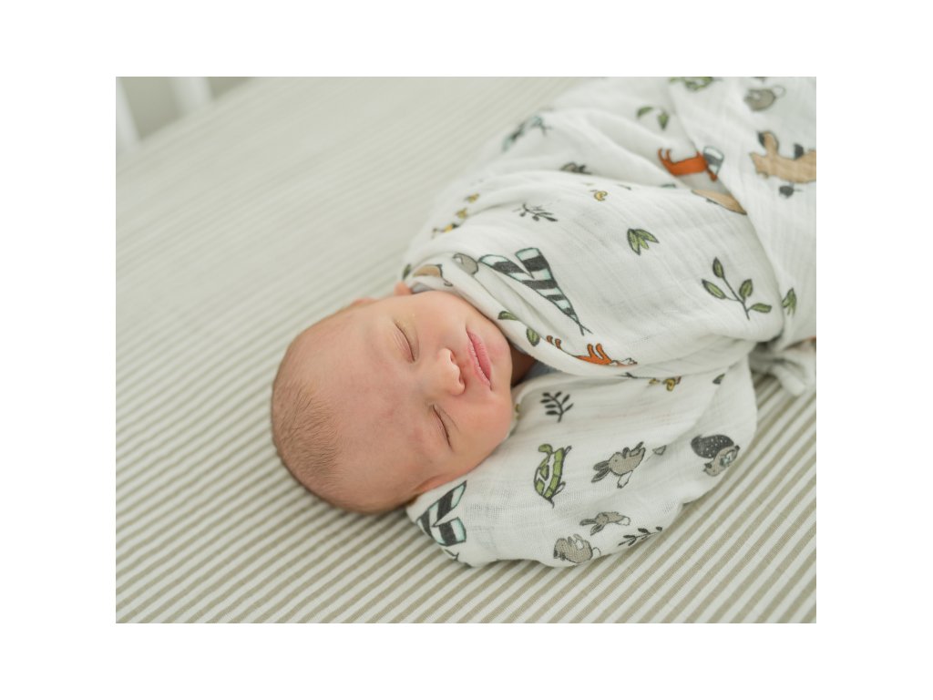 Zavinovací mušelínová plena s krásným potiskem je díky svým rozměrům ideální pro přikrytí nebo zabalení miminka. Jemný a vzdušný mušelín je vhodný od prvního dne života Vašeho miminka, neboť nedráždí jeho ci...