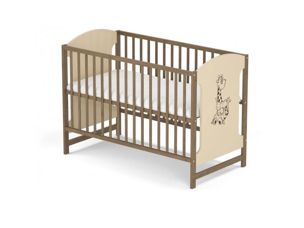 Stabilní a moderní dětská postýlka. Velký minimalistický design s roztomilým motivem žirafky. Vlastnosti: Hmotnost: 27 kg Rozměr: 120x60 cm 3 polohy roštu Potisk žirafky