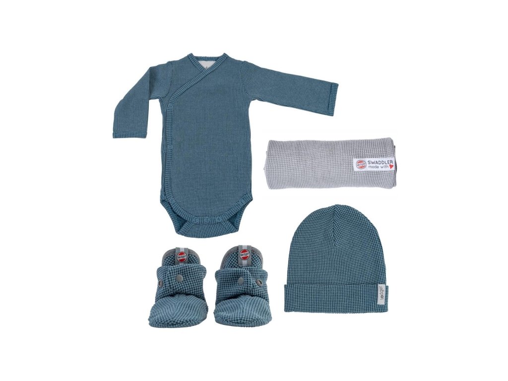 Skládá se z: body s dlouhým rukávem, čepičky, capáčků a plenky.