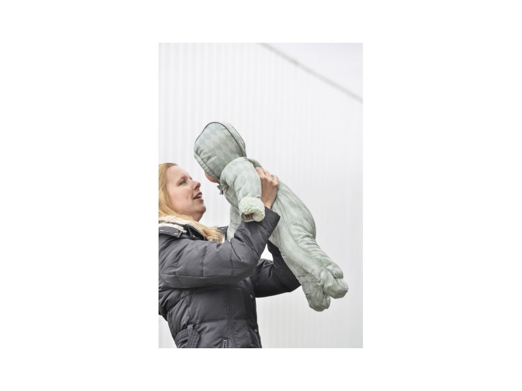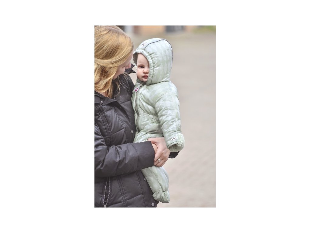 Zimní kombinéza Skier nizozemské značky Lodger je vyrobena z pevného, vodě i větru odolného polyesteru tak, aby miminko ochránila i za opravdu nepříznivého počasí. Podšívka je ušita z měkkého fleecu, který je příjemný na dotek a nedráždí dětskou pokožku. Kombinéza má tmavě šedou barvu s kosočtvercovým vzorem.