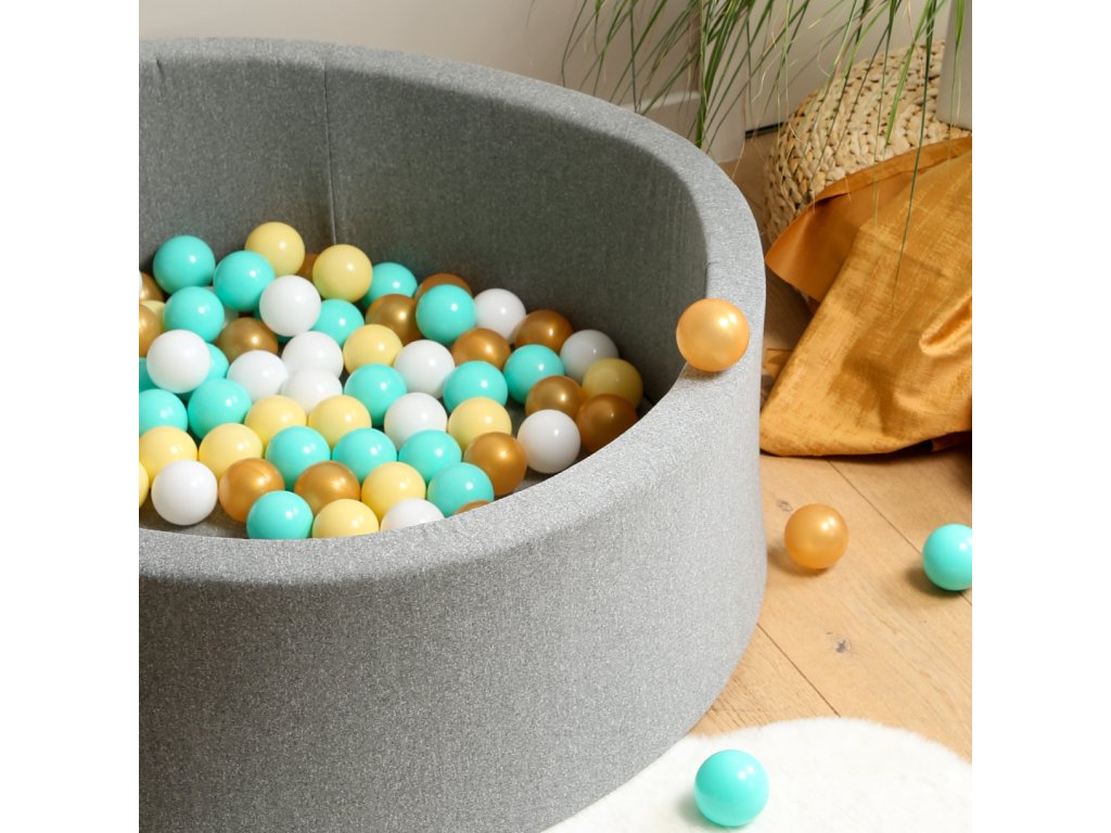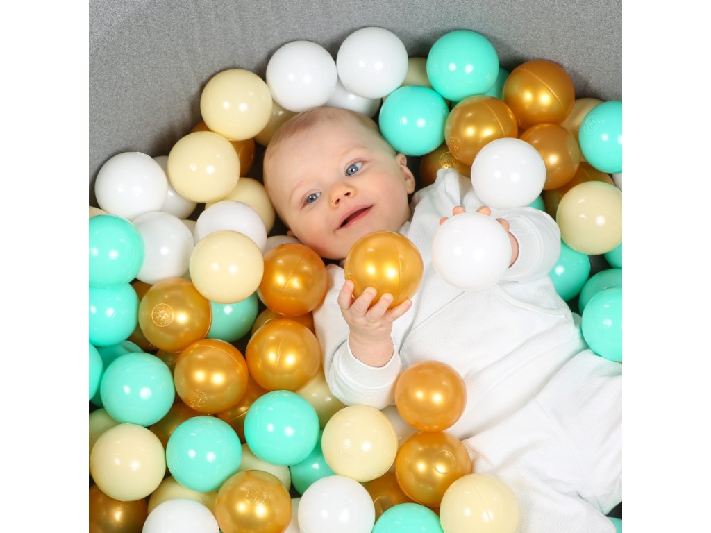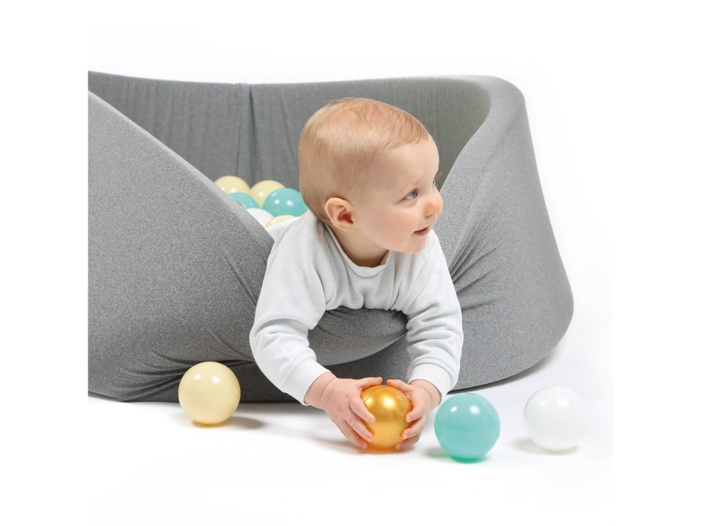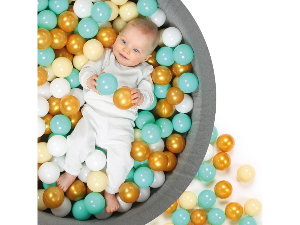 - Ohrádka je naplněna jemnými plastovými míčky v pastelových barvách, které stimulují dětské smysly a podporují rozvoj motoriky a koordinace