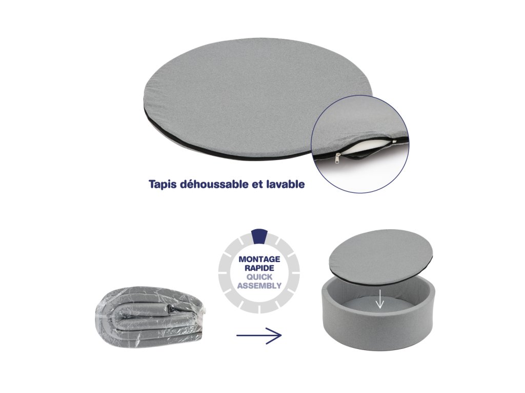 Tato elegantní textilní hrací ohrádka v jemně šedém odstínu krásně zapadne do každého interiéru a promění dětský pokoj ve stylový a bezpečný prostor na hraní. Je ideální pro první objevování světa – od válení po
