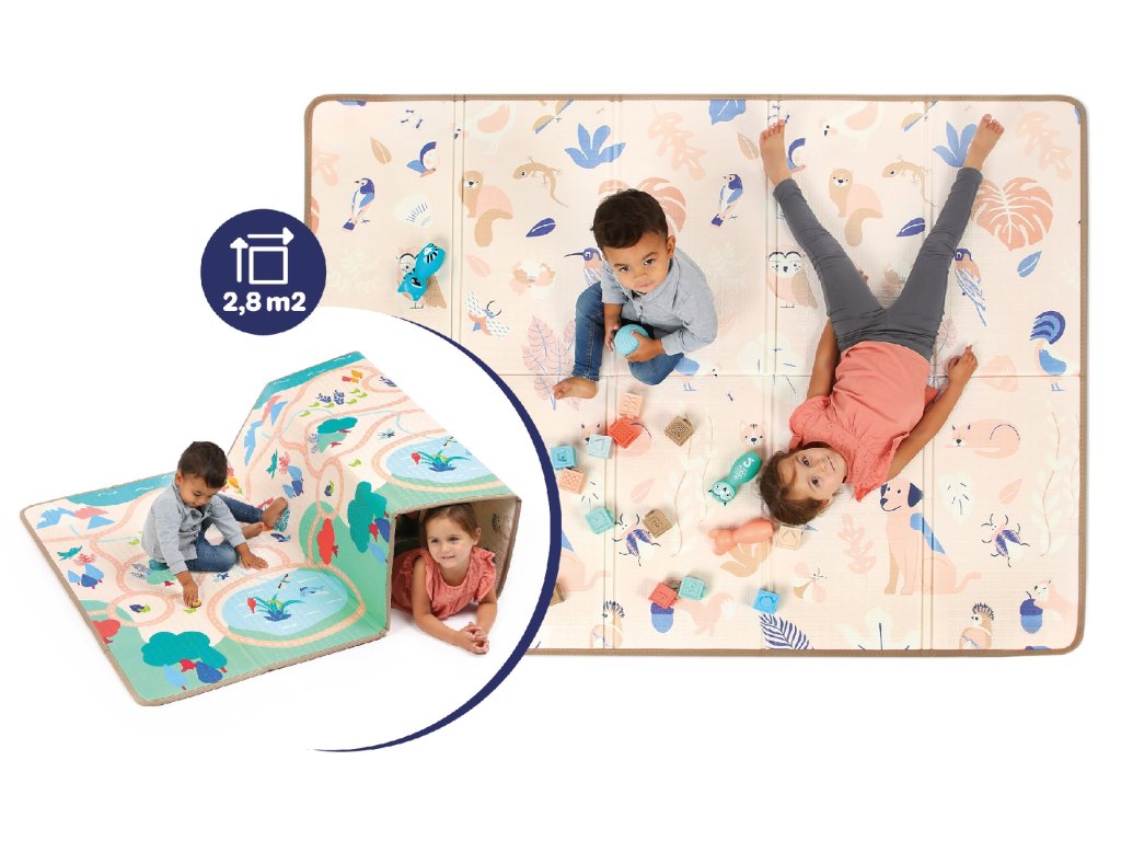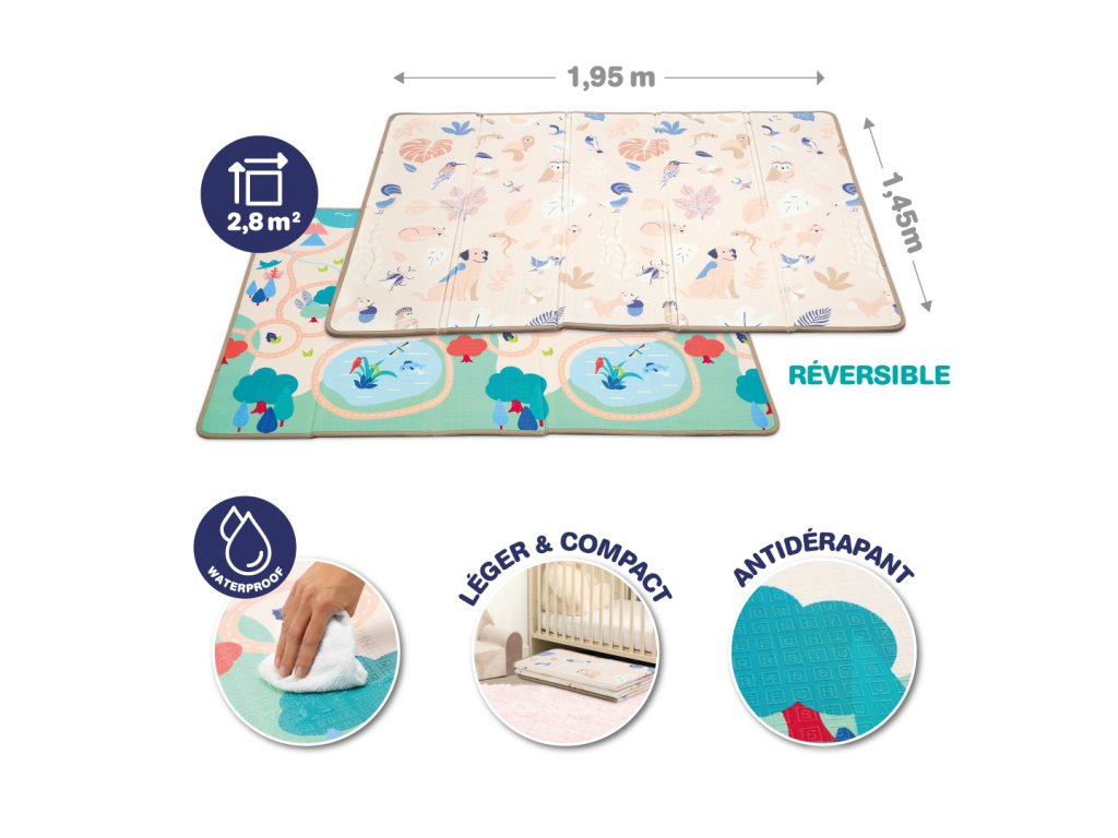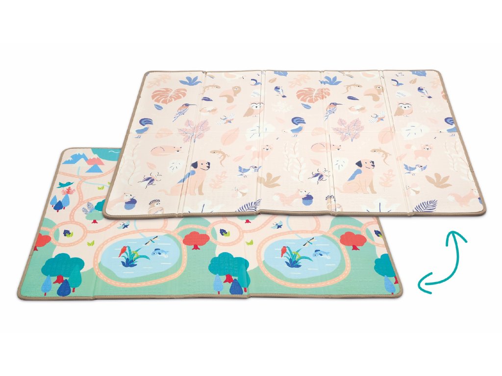 Velká podložka pro malé i větší objevitele! Tato měkká, skládací a oboustranná hrací podložka nabízí prostornou a bezpečnou plochu pro hraní, lezení, stavění i odpočinek.