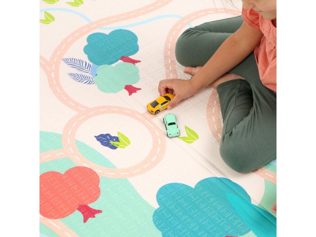 Podložka je dostatečně flexibilní a velká, takže si z ní děti mohou postavit tunel, překážkovou dráhu nebo si z ní vytvořit herní ostrůvek plný fantazie. Měkký a odolný pěnový materiál s protiskluzovou strukturou zajišťuje bezpečnost i pohodlí při každodenní hře.