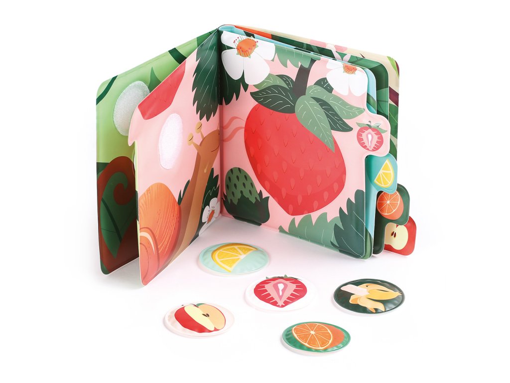 - Barevné ilustrace doplňuje jemná vůně ovoce, která se uvolní po přejetí prstem