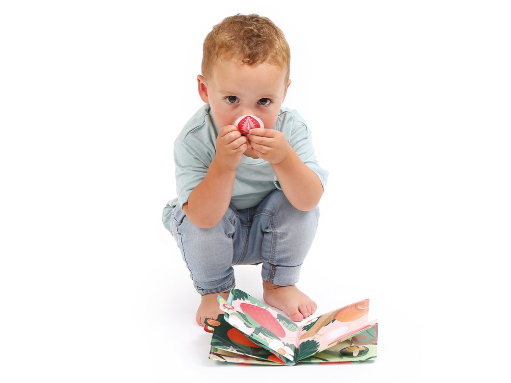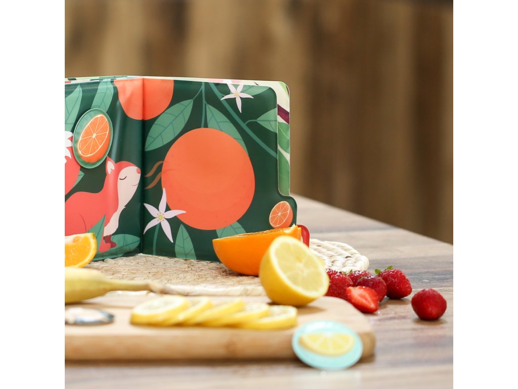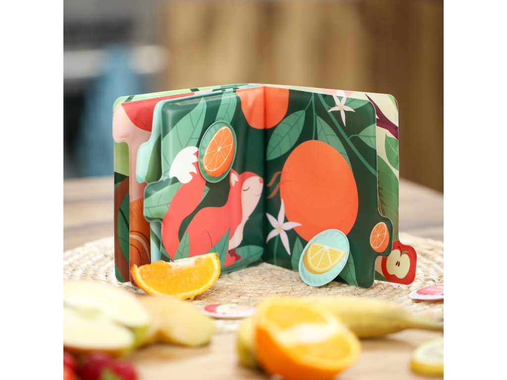 Vůně, barvy a první slova v jedné knížce! Tato interaktivní smyslová kniha s vůní ovoce vtáhne děti do světa chutí a přírody prostřednictvím veselých zvířátek a jejich oblíbeného ovoce. Každá stránka nabízí nová překvapení a probouzí zvídavost i fantazii.