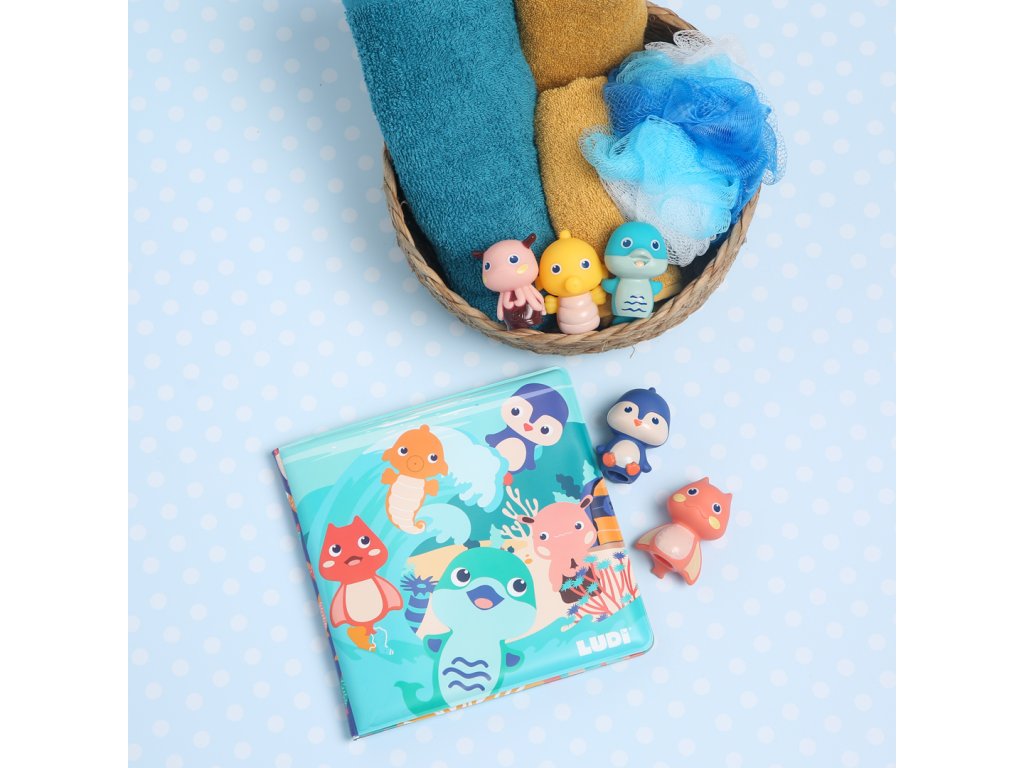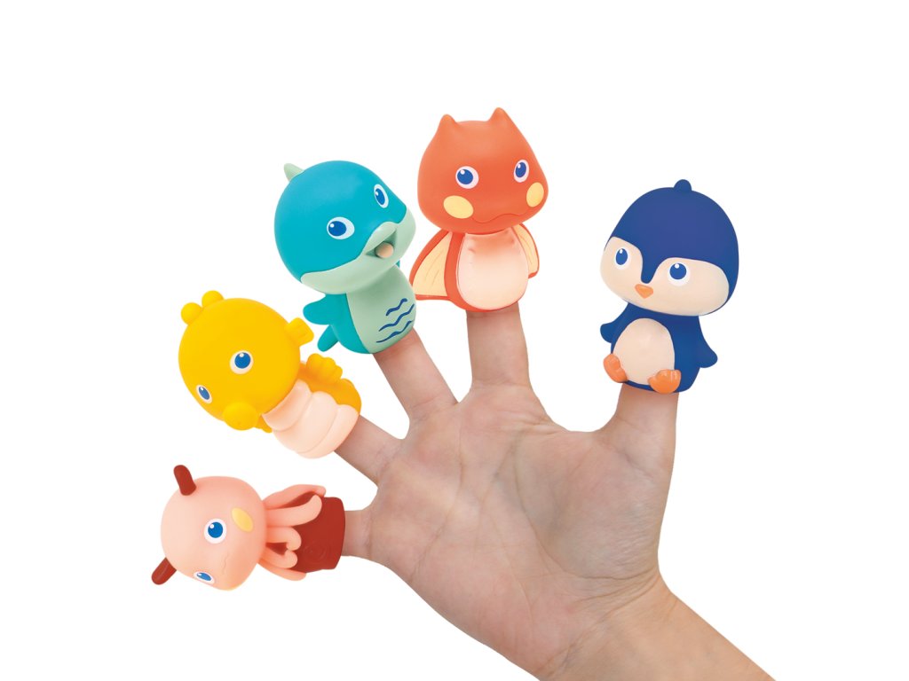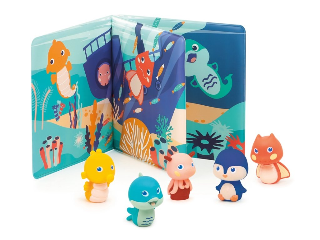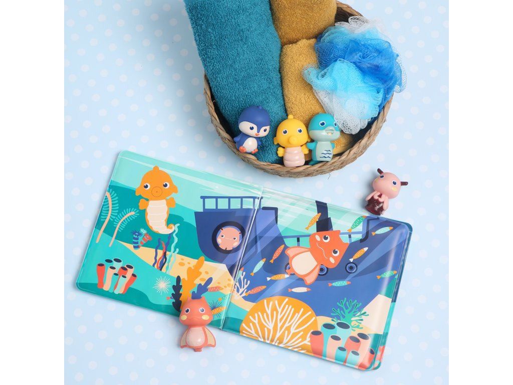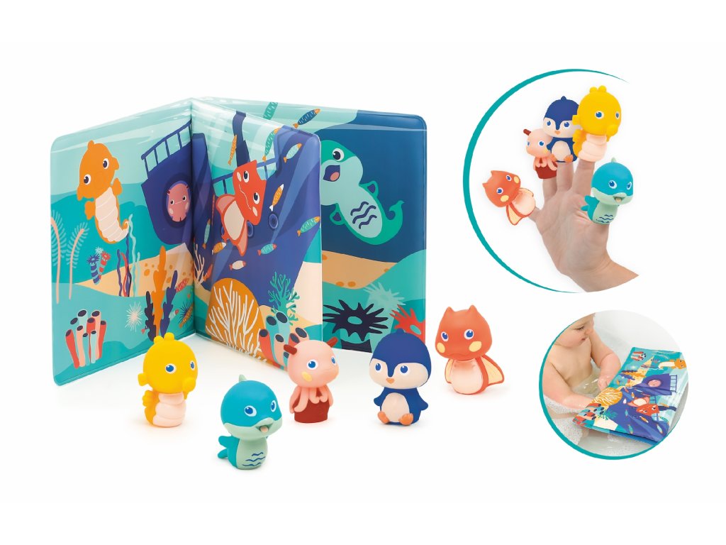 Knížka do koupele se zvířátky, která ožívají v prstech! Tato interaktivní koupací knížka s pěti prstovými maňásky přenese děti pod hladinu moře, kde je čekají barevné ilustrace, veselá zvířátka a neomezený prostor pro fantazii. Ideální do vany, bazénu i mimo vodu – na hraní není nikdy špatný čas!