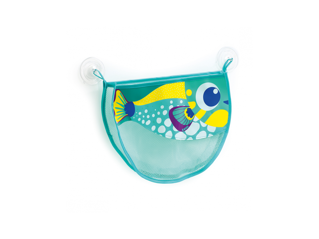 Originální skládací koš na hračky ve veselém designu ryby nabízí chytré řešení, jak mít koupelnu uklizenou hned po koupání. Koš snadno připevníte díky dvěma přísavkám nad vanu. Síťovinové díly umožňují odtok vody z uložených hraček a jejich vyschnutí.