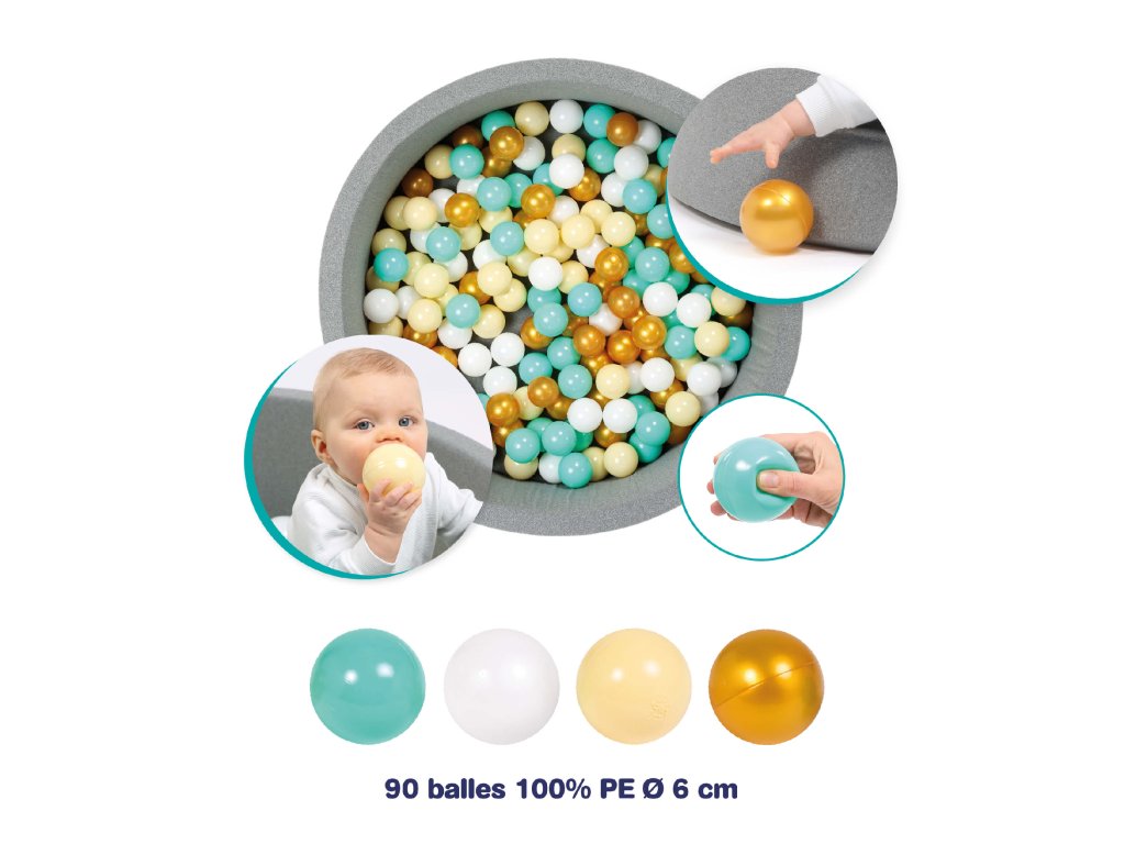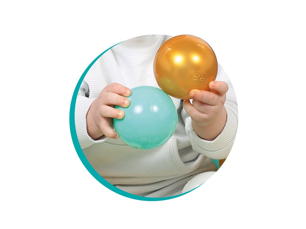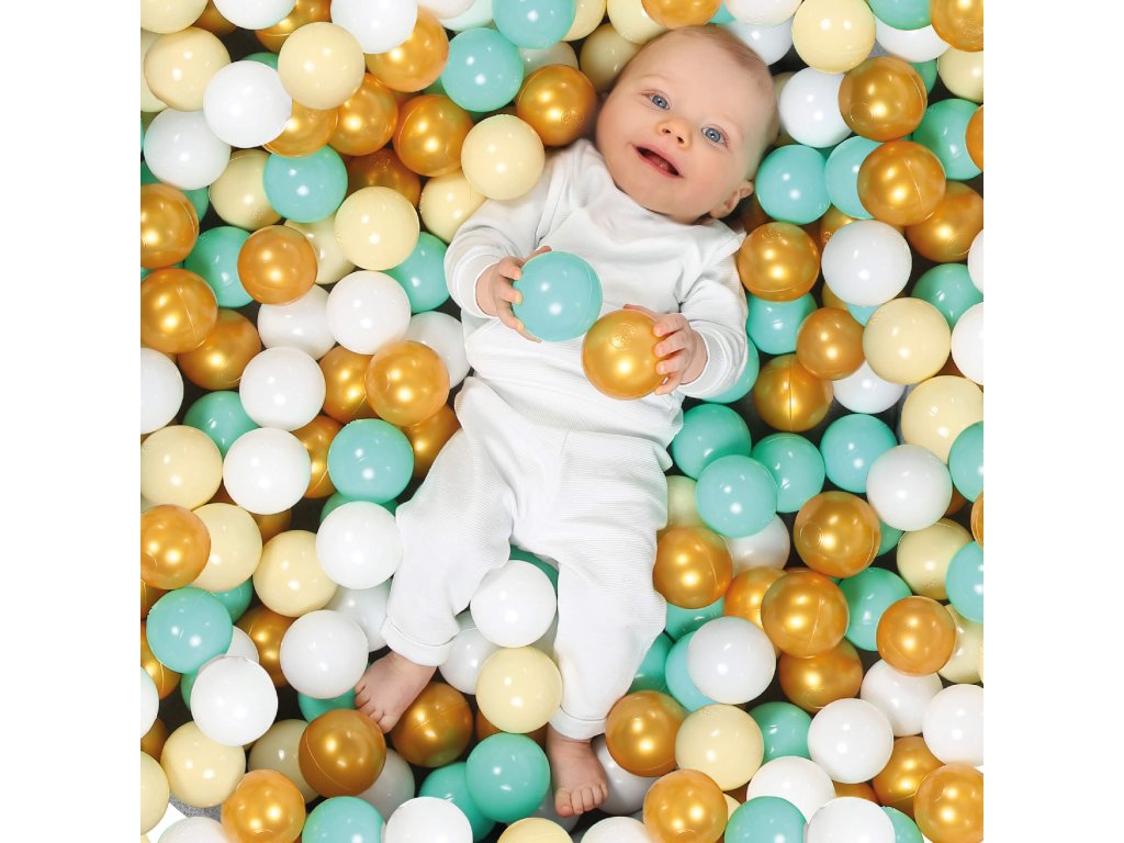 Díky průměru 6 cm se míčky dětem snadno drží, hází i mačkají – podporují tak rozvoj jemné motoriky a koordinace pohybu. Jemné odstíny ladí s každým interiérem: kombinace bílé, béžové, modré a zlaté vytváří elegantní a nadčasový vzhled, který si zamilují děti i rodiče.