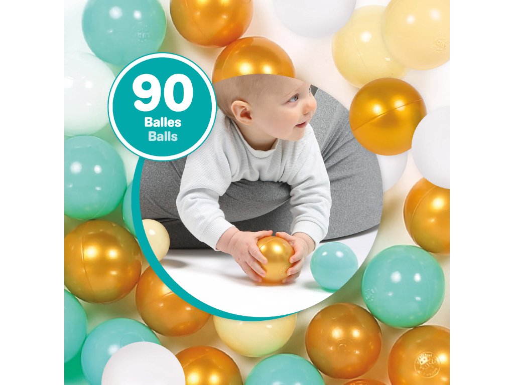 Sada 90 plastových míčků je ideální pro doplnění hracích ohrádek, bazénků nebo jako základ pro vlastní míčkový bazén. Měkký, ale odolný materiál zajišťuje bezpečné hraní i pro nejmenší.