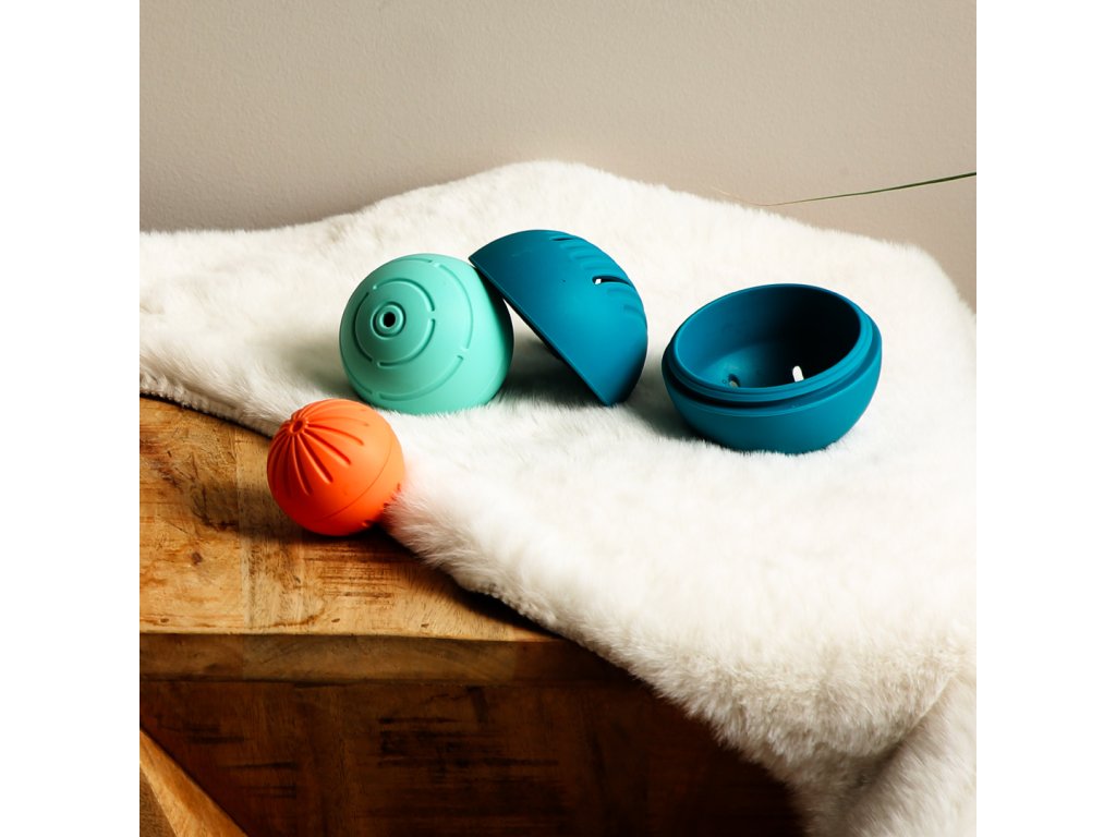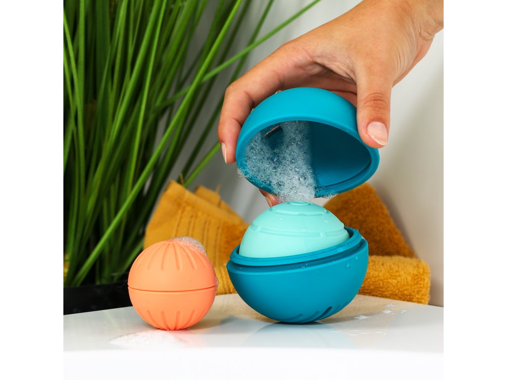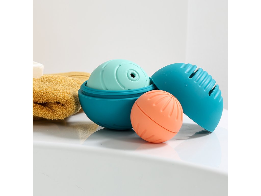 - Díky různě velkým otvorům se míčky skvěle hodí i do koupele – voda jimi protéká pokaždé jinak a zajišťuje originální smyslový zážitek