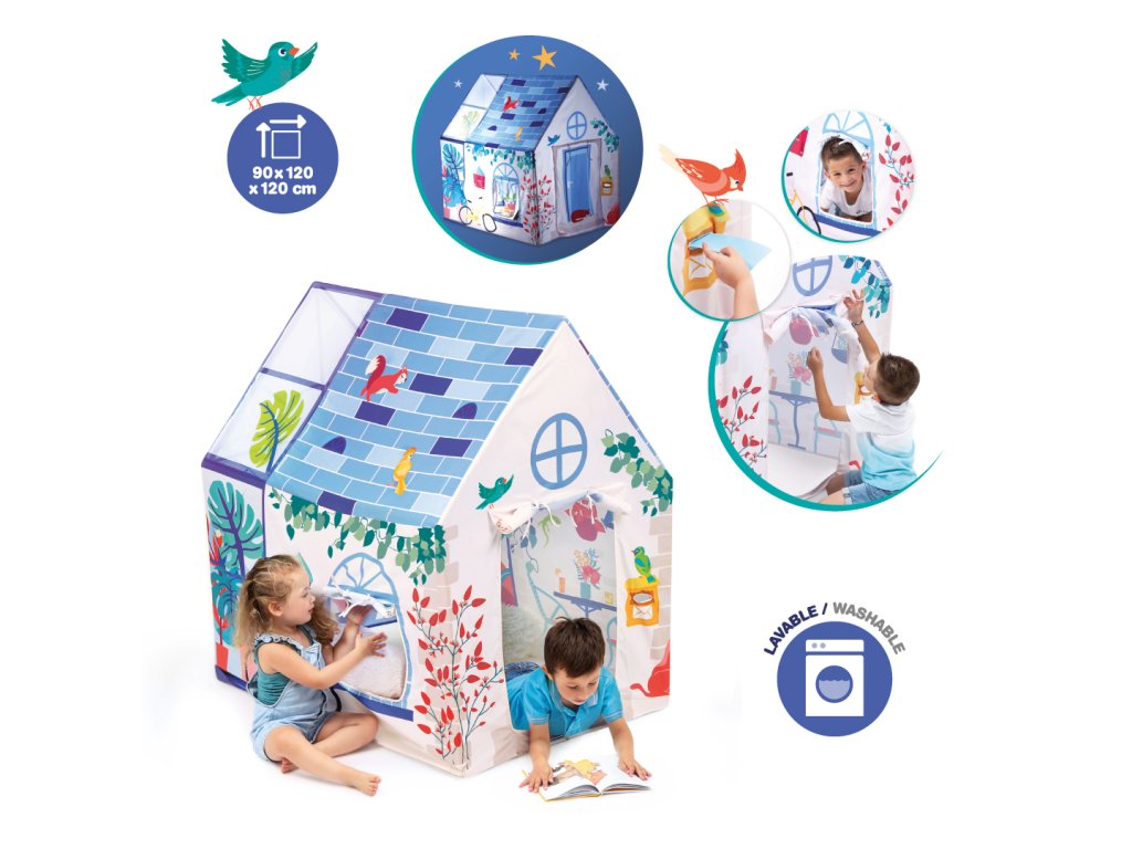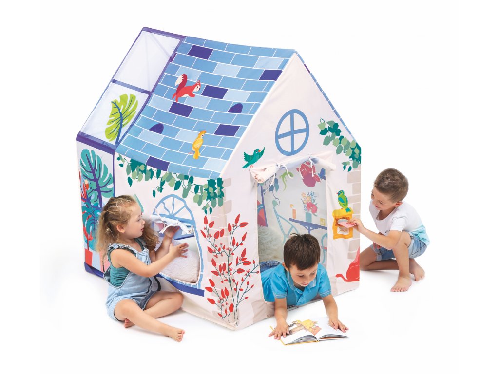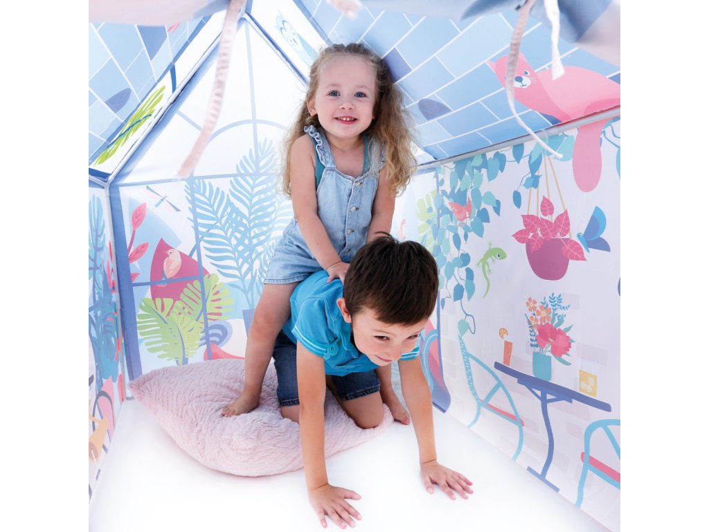 Hrací stan pro malé snílky a objevitele je ideálním místem pro dětské hry na doma i na zahradě. Děti si v něm vytvoří vlastní svět plný fantazie – ať už si hrají na obchod, čtou knížku nebo jen odpočívají ve svém útočišti.