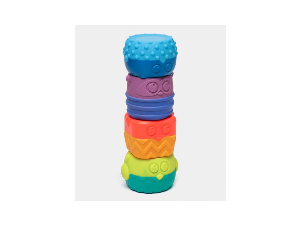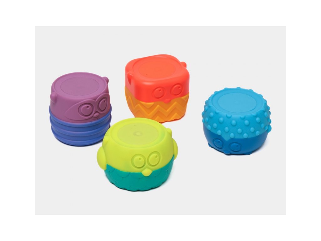Hračku tvoří čtyři barevné postavičky z příjemného, měkkého materiálu.
