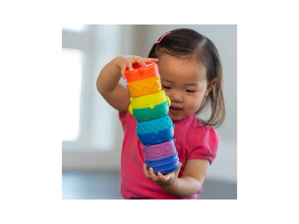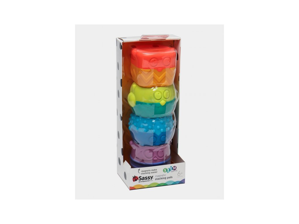 Díky magnetům na spodní i horní straně každé postavičky je lze snadno skládat v libovolném pořadí do věže.