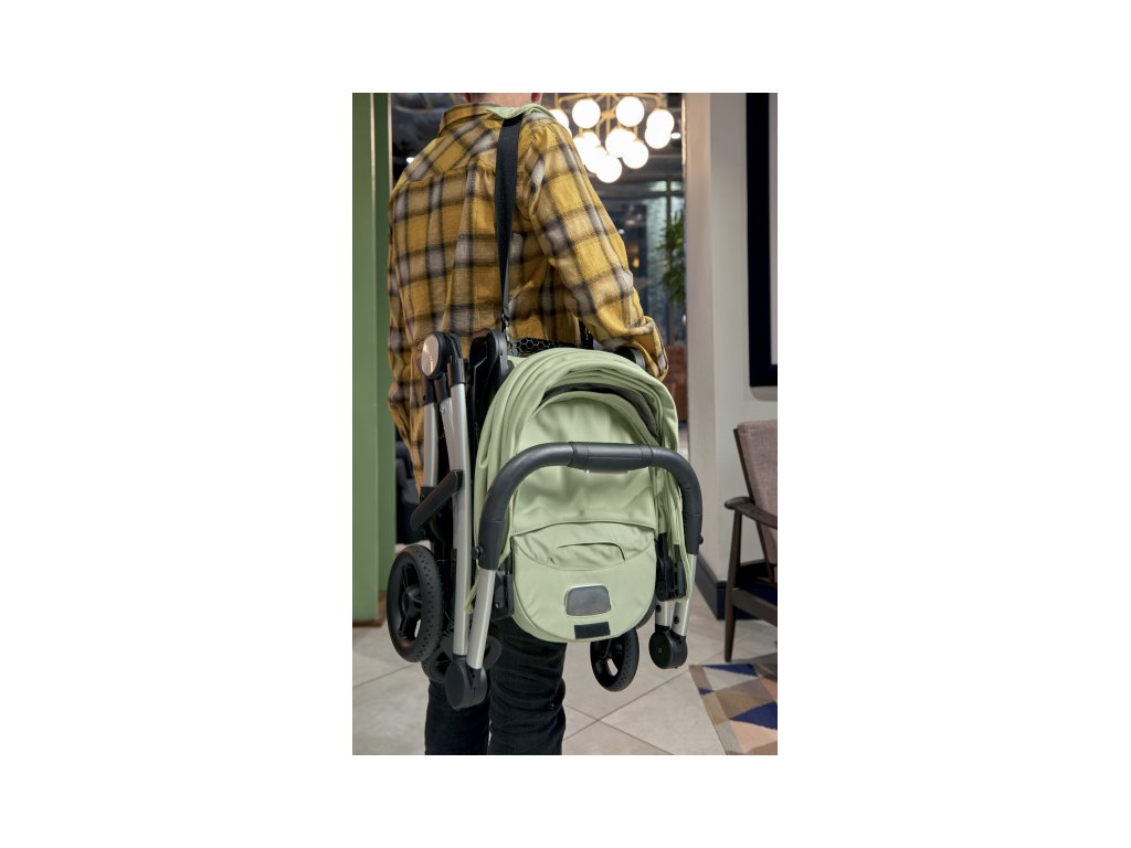Ultra kompaktní tvar po složení je praktický pro převážení v autě, na cestování letadlem i pro uložení kočárku doma. Kočárek snadno složíte jednou rukou a díky popruhům je možné jej přenášet na zádech jako batoh či přes rameno jako tašku.