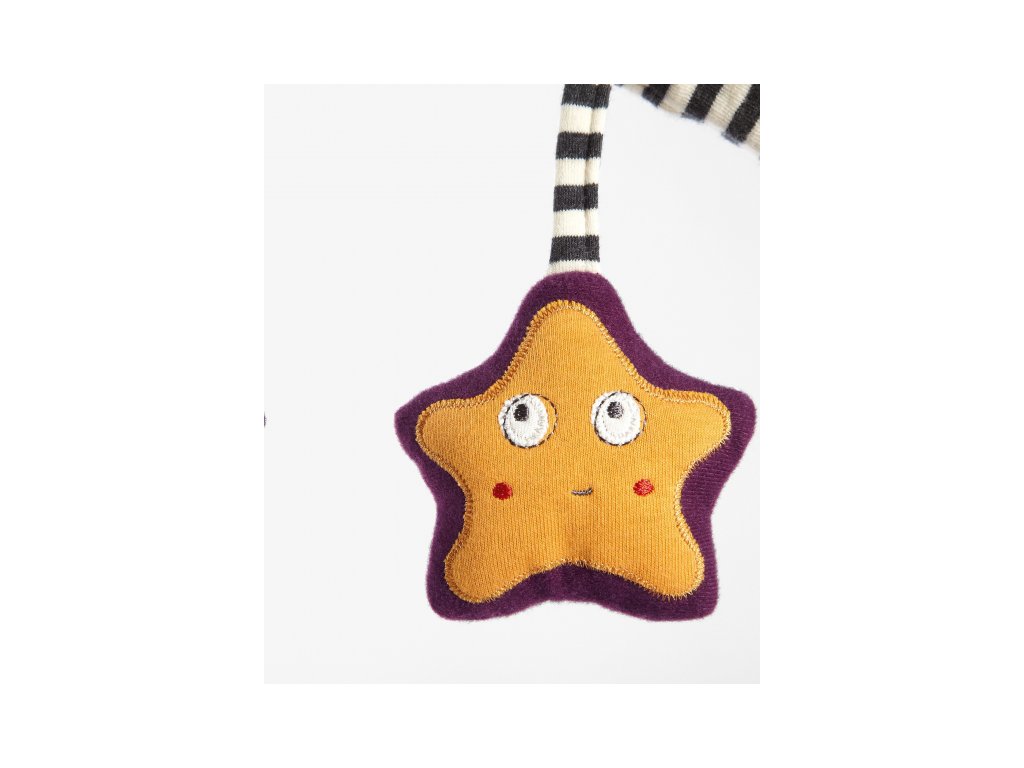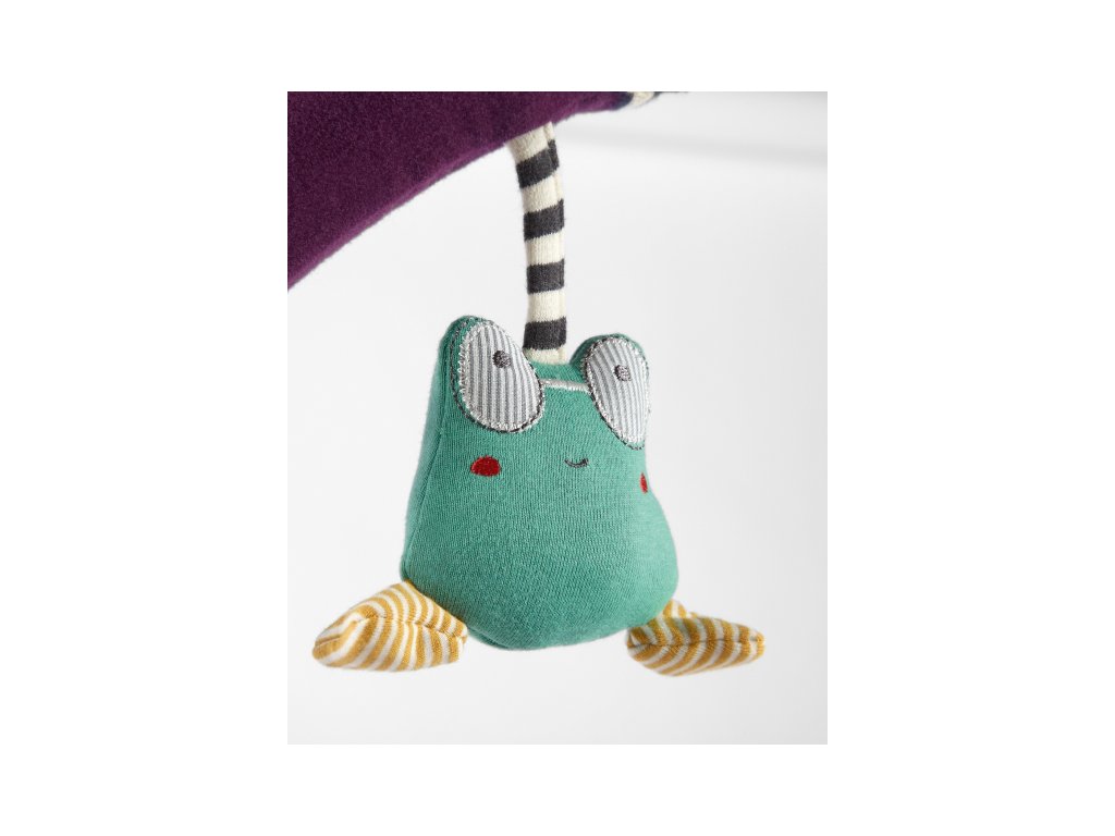 Hrazda se třemi roztomilými hračkami je určena pro připevnění na autosedačku nebo kočárek. Hračky ve tvaru chobotničky, žabáka a hvězdičky chrastí, cinkají a šustí a podněcují tak dítě k jejich zkoumání. Hra...