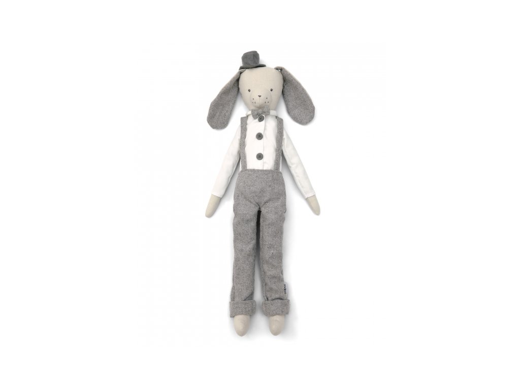 Pejsek z textilního materiálu v kalhotách a košili s kloboučkem. Kamarád pro vaše dítě na hraní i do postýlky na příjemné usínání.