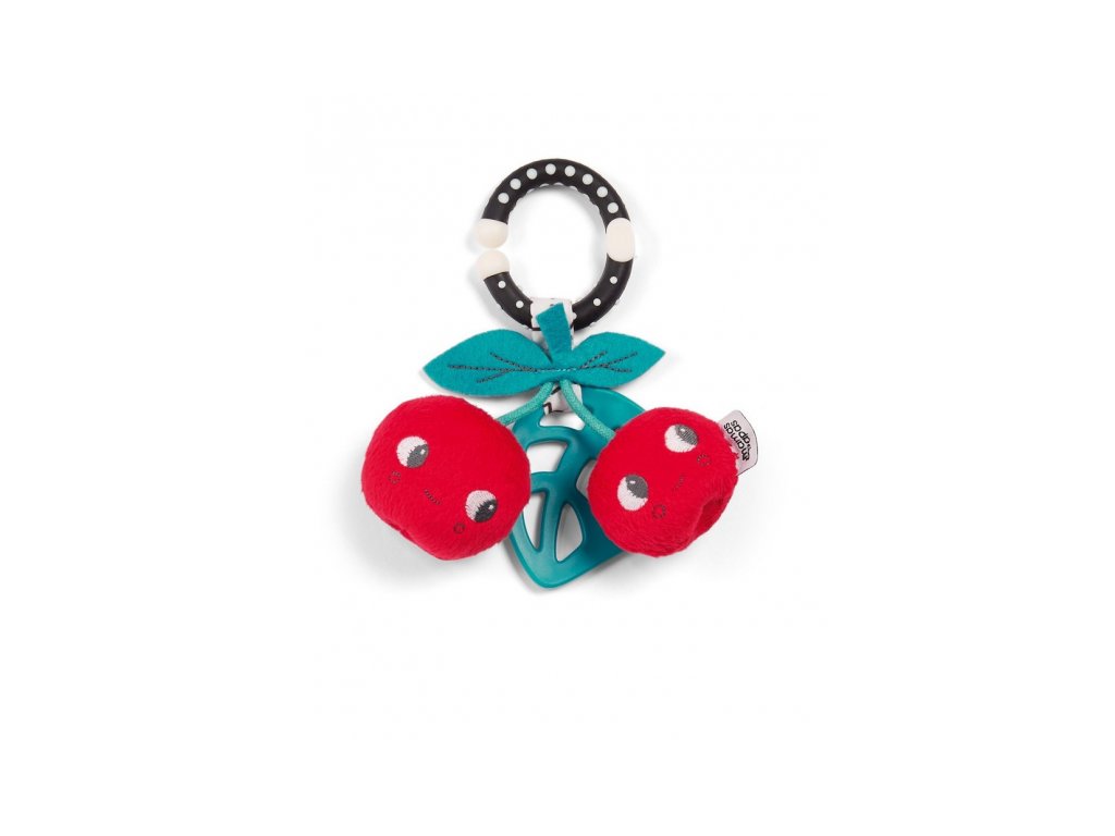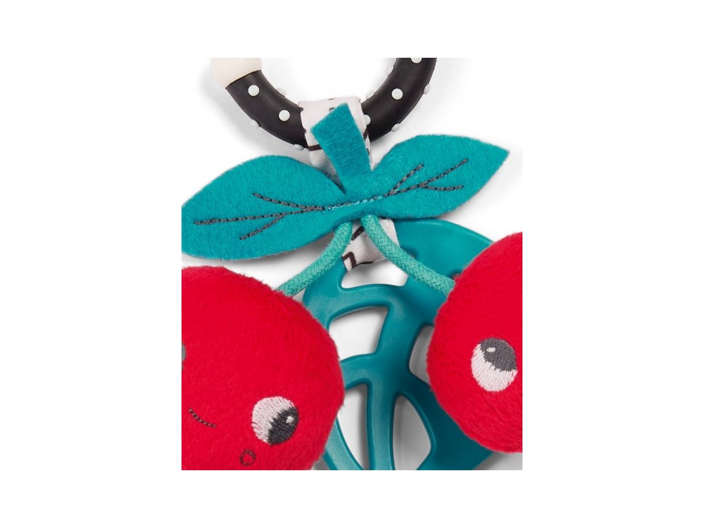 Třešničky jemně chrastí a šustí a lístek slouží jako kousátko k úlevě při prořezávání zoubků. Ideální k zavěšení na kočárek či autosedačku.