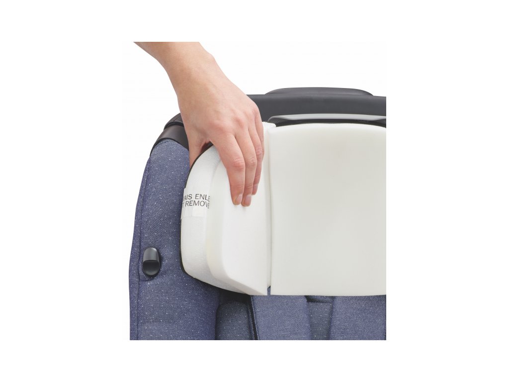 Systém boční ochrany nabízí optimální ochranu v případě bočního nárazu. Opěrka hlavy je vyrobena ze speciálního materiálu absorbujícího náraz. 5-bodový bezpečnostní pás s protiskluzovými chrániči umožňuje rychlé a bezpečné připoutání dítěte.