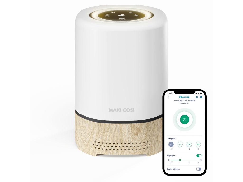 Čistička vzduchu Maxi-Cosi 3v1 Clean je chytré zařízení do dětského pokoje, které pomáhá vytvořit čisté a klidné prostředí pro spánek i každodenní pohodu. V jednom přístroji kombinuje čističku vzduchu, noční světlo a reproduktor s uklidňujícími zvuky. Díky výkonné HEPA 13 filtraci odstraňuje ze vzduchu až 99,97 % prachu, pylu, alergenů a dalších částic, takže se vašemu dítěti dýchá lépe ve dne i v noci. Nastavitelné světlo a 4 uklidňující zvuky vám umožní vytvořit příjemnou atmosféru před usínáním. Vše pohodlně nastavíte i na dálku přes aplikaci Maxi-Cosi Connected Home.