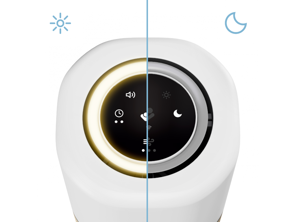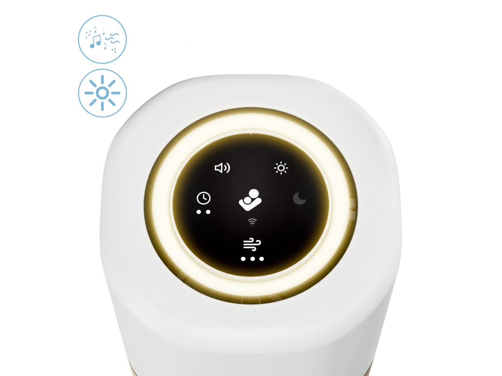 - 3 funkce v jednom zařízení: čistička vzduchu + noční světlo + uklidňující zvuky
