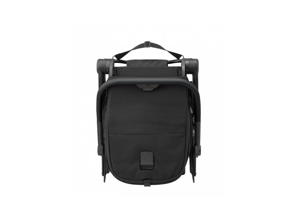 - Složený kočárek stojí samostatně ve vzpřímené poloze