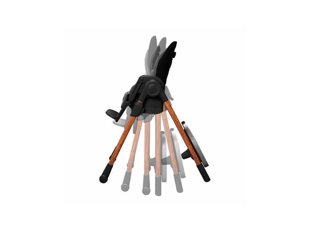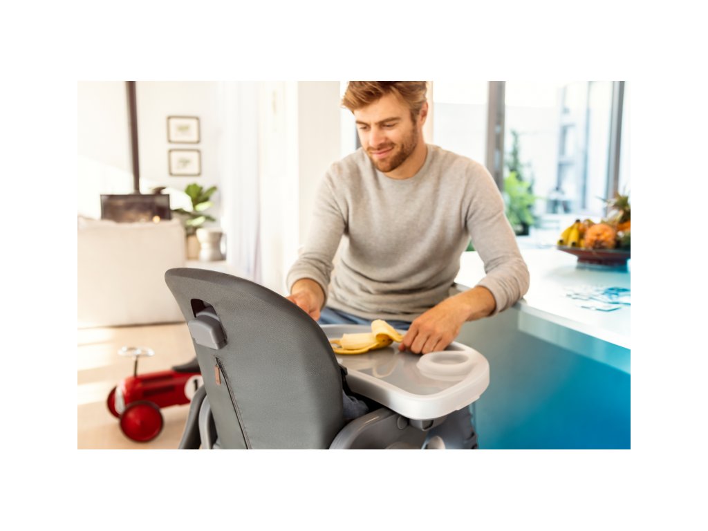 Židlička nabízí 9 nastavení výšky a je tak vhodná téměř ke každému stolu. Zadní opěrku můžete nastavit do 5 různých poloh od ležení po sezení. Variabilitu nastavení doplňují 4 varianty polohování nohou a 2 pozice podpěrky na nohy. Jídelní pult nabízí 4 různé možnosti použití a je možné jej zavěsit na zadní nohy židličky. Odnímatelný tác na jídelním pultu usnadňuje jeho údržbu po stolování.