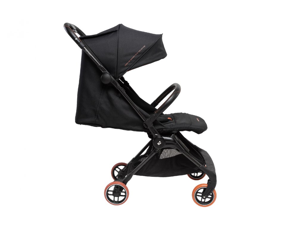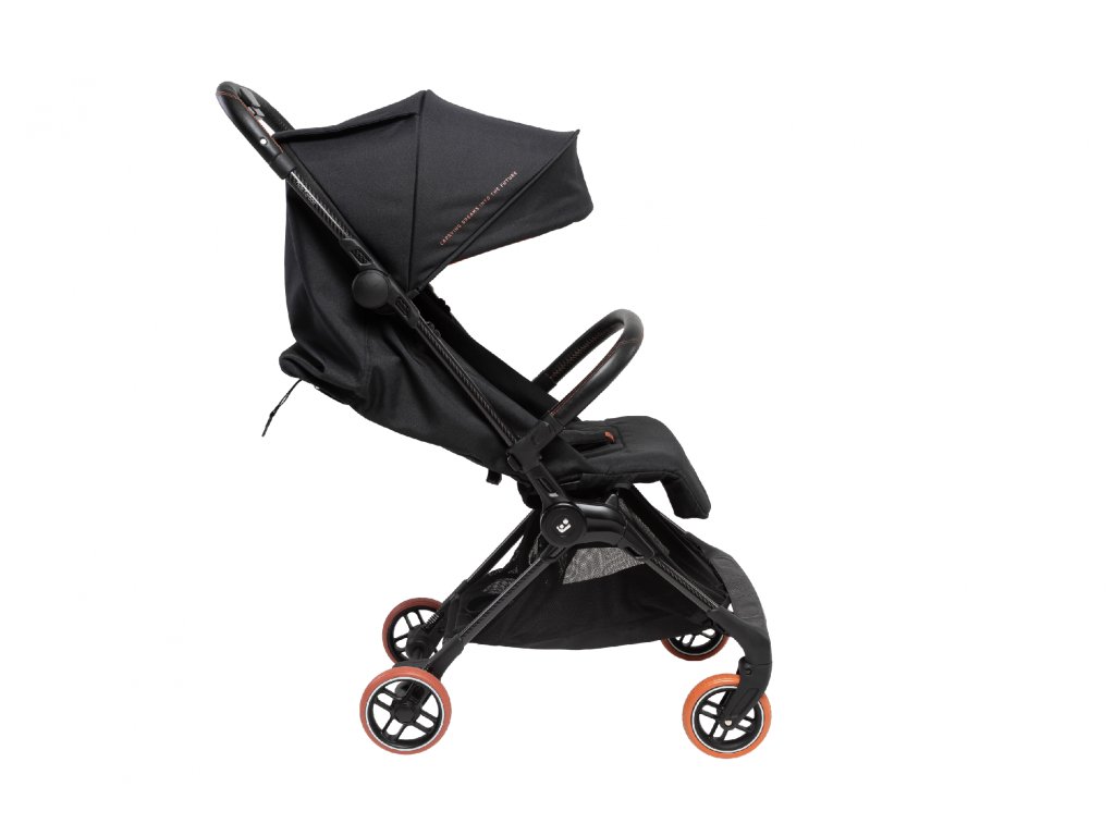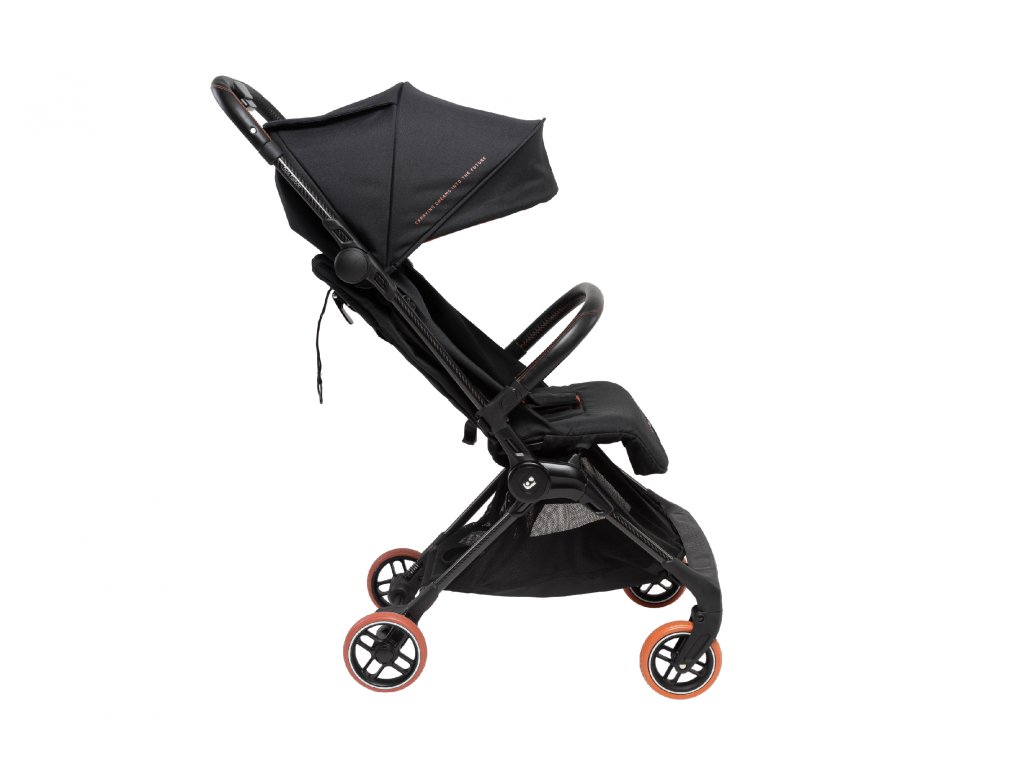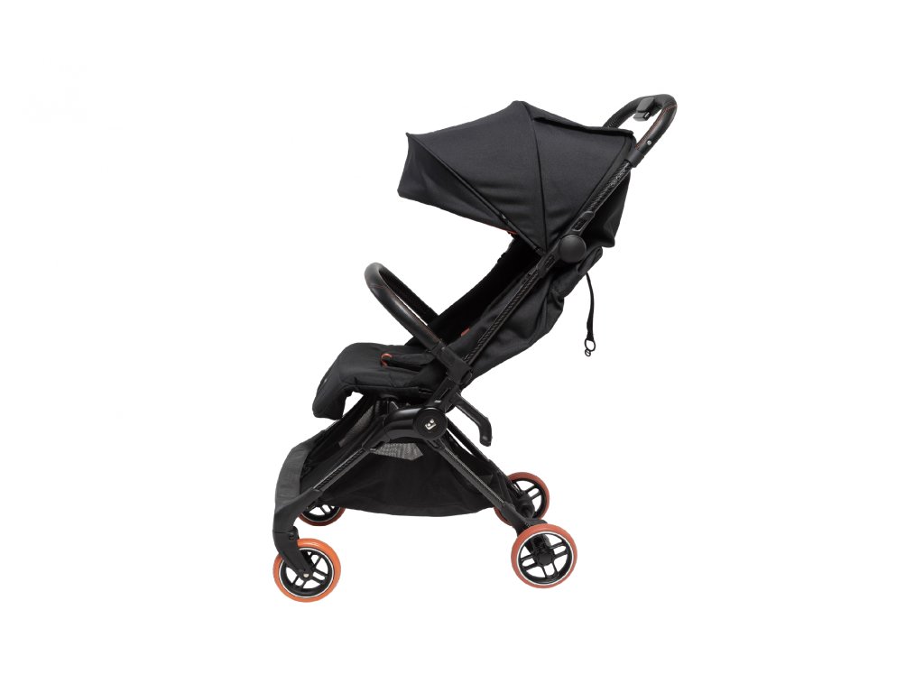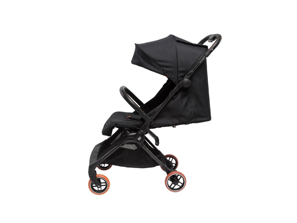 - Kočárek se skládá do ultrakompaktního tvaru velikosti palubního zavazadla a po složení samostatně stojí.