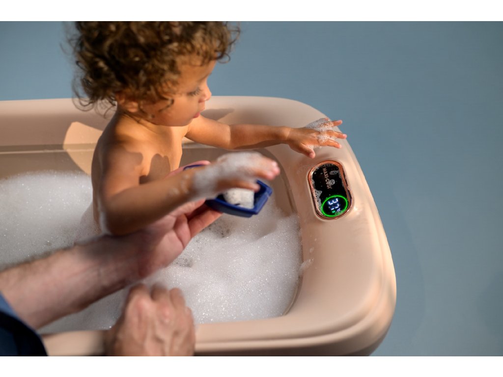 - Jakmile dítě zvládne sedět, vložku jednoduše odejmete a vanička dál slouží jako prostorná vana pro batole.