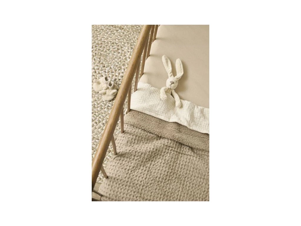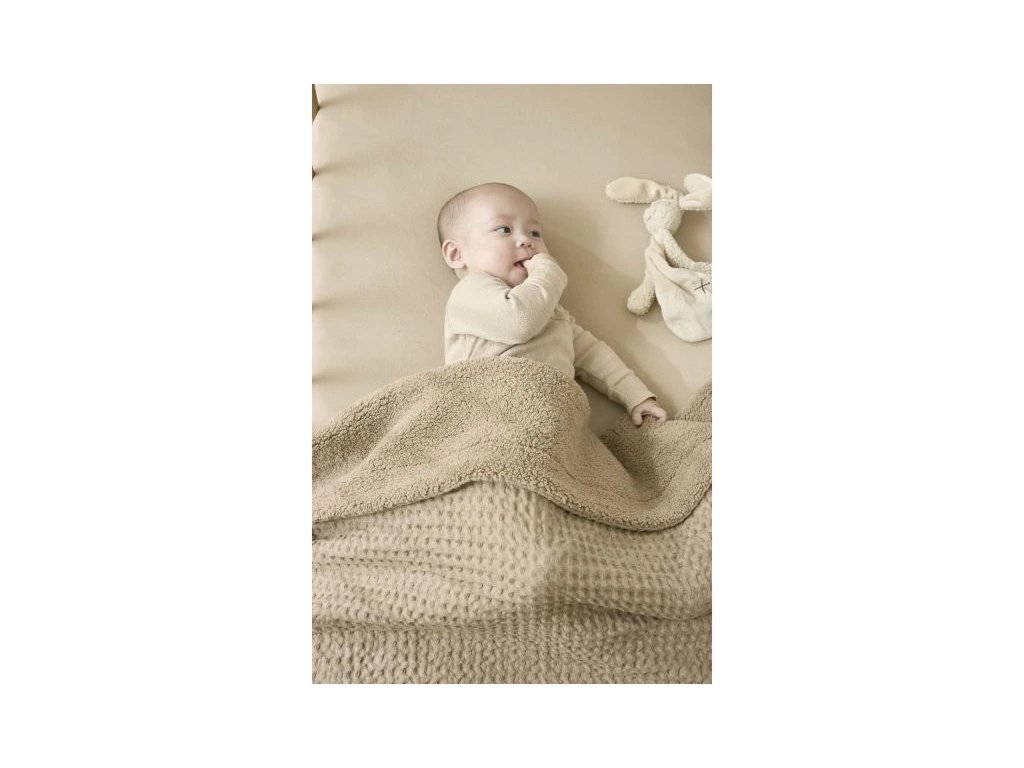 Deka je vyrobena ze 100% nebělené bavlněné vaflové tkaniny na přední straně. Úžasně měkká spodní strana je vyrobena ze 100% polyesterového teddy fleece. Nebělená bavlna se vyrábí bez použití škodlivých chemikálií a bělidel, což přispívá k udržitelnějšímu světu. Díky přirozené barvě a struktuře bavlněných vláken má přikrývka hodnotu TOG 2,0. Čím vyšší hodnota TOG, tím teplejší.