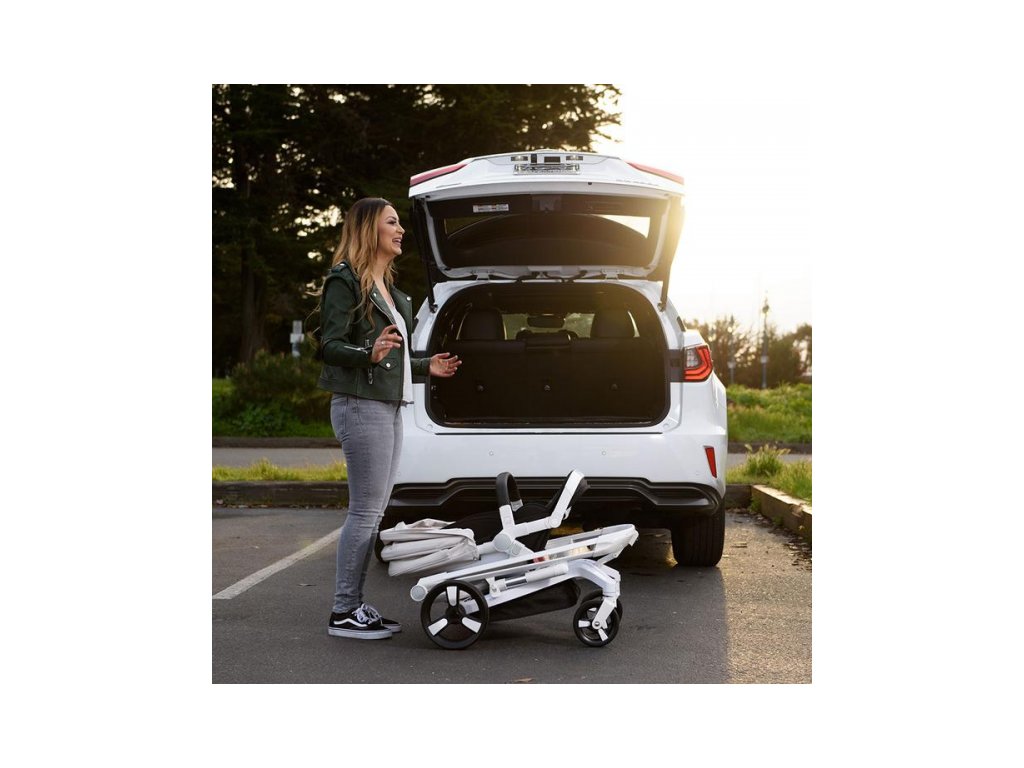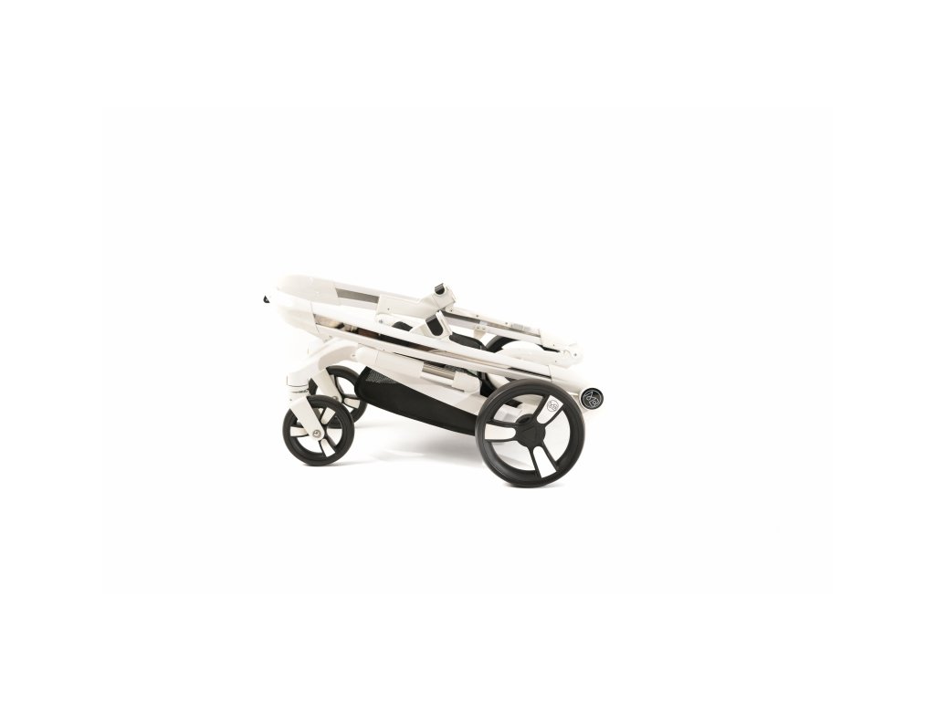 Kočárek velmi snadno a rychle složíte do kompaktního tvaru pro převážení např. v kufru auta.