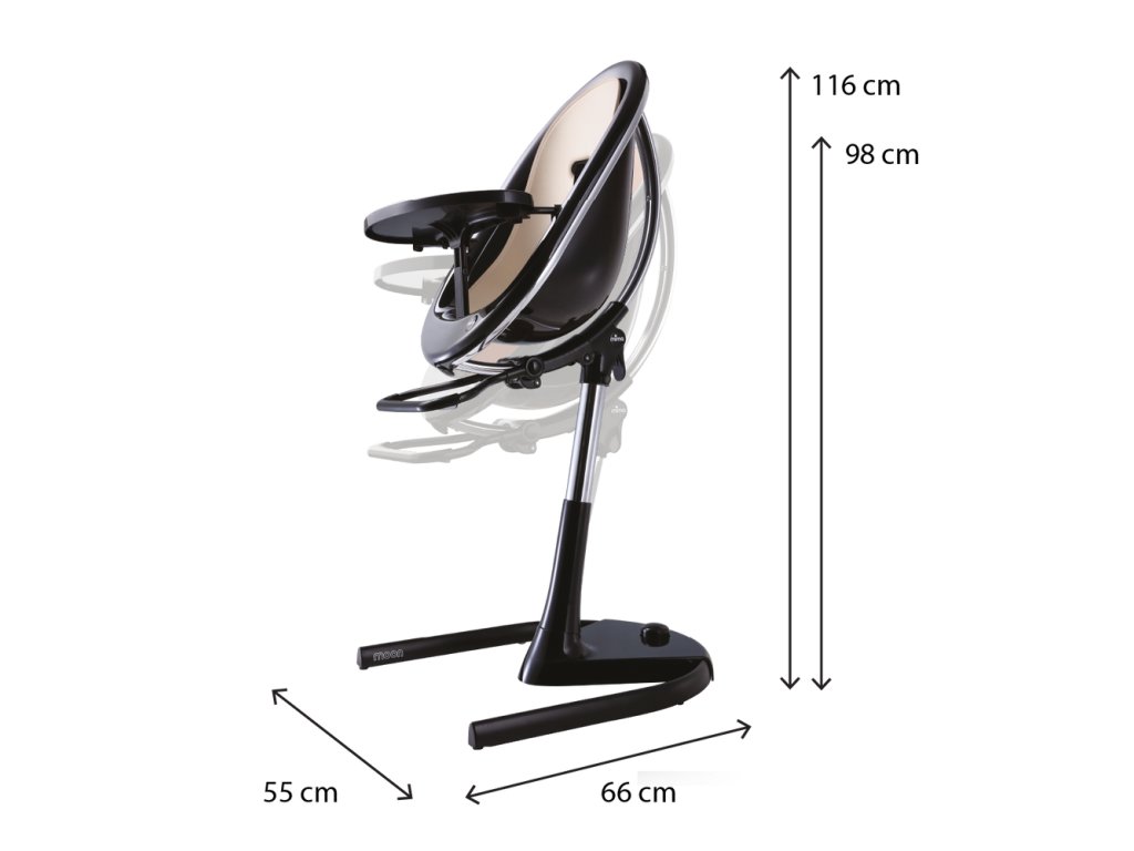 Stylová židlička Mima Moon je to pravé pro milovníky soudobého špičkového designu. Svým řešením 3v1 umožní dítěti být již od narození až do školního věku součástí rodinného stolování. Díky různým možnostem náklonu a volitelnému vkládacímu polstrování je vhodná pro miminka od narození. S odnímatelným pultem a opěrkou nohou je použitelná jako židlička na krmení pro batolata od 6 měsíců. Vyjmutím vnitřního sedáku židličku snadno přeměníte v židli pro větší děti, které ji mohou používat samostatně u stolu. Židlička je velmi jednoduše výškově nastavitelná a ve své maximální výšce se hodí i ke kuchyňským barovým pultům. Pevná a stabilní konstrukce je zárukou bezpečí pro dítě. Kolečka Easy-Glide usnadňují přesunování židličky v interiéru.